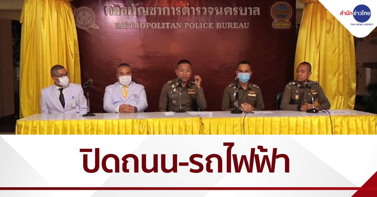 กรุงเทพฯ 17 ต.ค.- สตช. แถลงปิดระบบขนส่งมวลชน ทั้งรถไฟฟ้า BTS-MRT รวมถึงแอร์พอร์ตเรลลิงก์ พร้อมปิดการจราจรพื้นราบ บริเวณวงเวียนอนุสาวรีย์ชัยสมรภูมิ และแยกอโศก-เพชรบุรี