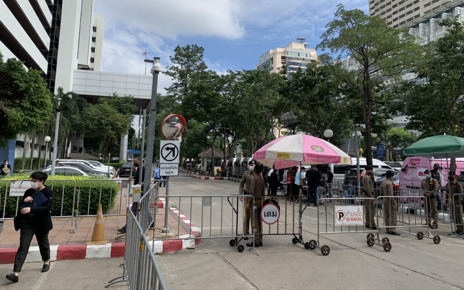 ขณะที่ศาลอาญา รัชดาฯ วันนี้ (21 ต.ค.) มีการตั้งจุดตรวจคัดกรองจากตำรวจกองบังคับการตำรวจนครบาล 2 จำนวน 150 นาย ดูแลความปลอดภัย และห้ามผู้ไม่เกี่ยวข้อง รวมถึงสื่อมวลชน เข้าไปในพื้นที่ด้านหน้าศาลอาญา โดยให้รออยู่นอกแนวแผงกั้นของเจ้าหน้าที่