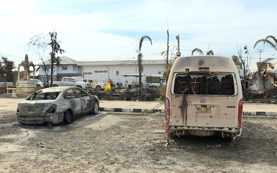 สำหรับ สภ.เปร็ง ซึ่งอยู่ห่างจากจุดเกิดเหตุประมาณ 500 เมตร ระบบสาธารณูปโภคไฟฟ้าและสื่อสาร ยังใช้การไม่ได้ อาคารสถานที่เสียหายบางส่วน รถยนต์เสียหาย 5 คัน รถจักรยานยนต์ 6 คัน ส่วนกำลังพลทั้ง 40 นายไม่ได้รับบาดเจ็บ อย่างไรก็ตาม ผบ.ตร.สั่งการให้สับเปลี่ยนรถที่ได้รับผลกระทบ นำรถมาทดแทนแล้วเพื่อให้สามารถปฏิบัติงานได้ ส่วนระบบไฟฟ้า ปตท. และการไฟฟ้าส่วนภูมิภาค อยู่ระหว่างการซ่อมแซม คาดใช้ได้ช่วงเย็นวันนี้