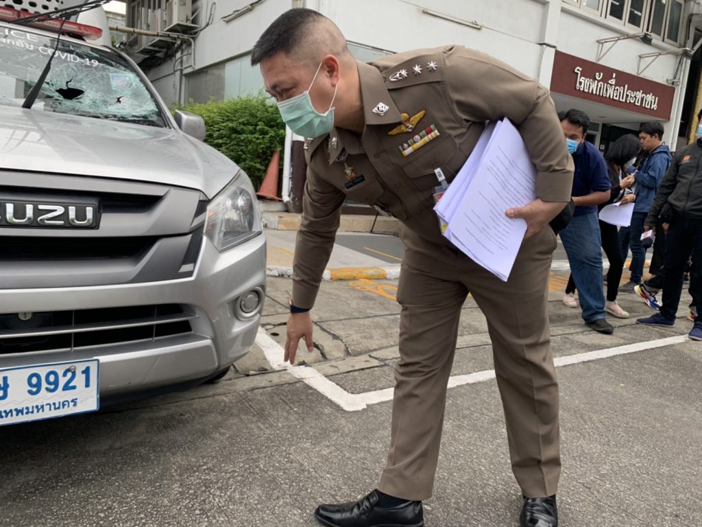 ส่วนการทุบทำลายรถควบคุมผู้ต้องหาในพื้นที่ สน.ประชาชื่น ส่วนนี้ประชาชนคงเห็นคลิปชัดเจนอยู่แล้ว มีกลุ่มผู้ชุมนุมหรือผู้ไม่หวังดีกลุ่มหนึ่งพยายามที่ชิงตัวผู้ต้องหา มีการนำรถจักรยานยนต์มากีดขวางรถควบคุมผู้ต้องหา กระทั่งตำรวจต้องตัดสินใจใช้รถควบคุมผู้ต้องหาดันรถจักรยานยนต์ดังกล่าวออกจากเส้นทาง นอกจากนี้ยังมีการพยายามใช้สิ่งต่างๆ เช่น หมวกกันน็อก แท่งเหล็ก ทุบทำลายรถควบคุมผู้ต้องหาในระหว่างทาง ส่วนจะเป็นกรณีการแย่งชิงผู้ต้องหาหรือไม่นั้น จะต้องรวบรวมพยานหลักฐานและพฤติการณ์อื่นๆ ก่อนว่าจะเป็นไปตามกฎหมายหรือไม่ต่อไป