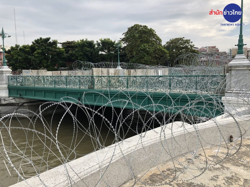 ขณะที่ความเคลื่อนไหวตั้งแต่เช้า รอบทำเนียบบริเวณสะพานมัฆวานรังสรรค์ข้ามคลองผดุงกรุงเกษม ถนนราชดำเนินนอก มีการวางสิ่งกีดขวางตลอดแนวขวางของถนนป้องกันผู้ชุมชุมเข้าพื้นที่หวงห้าม ทั้งแบริเออร์ปูนขนาดใหญ่ รั้วลวดหนามติดตั้งแต่ยังเปิดให้รถสัญจรได้ปกติในเส้นทางหลักถนนราชดำเนินนอก