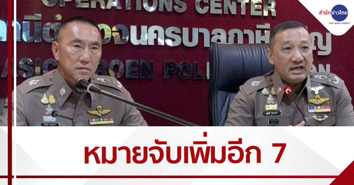 กทม.10 พ.ย.- ศาลออกหมายจับอีก 7 คดียิงหน้าร้านนวดย่านราชพฤกษ์ เป็นฝั่งเสี่ยโป้ ส่วนการขยายผลค้น 13 จุด พบอาวุธปืน 5 กระบอก และยาเสพติดจำนวนหนึ่ง
