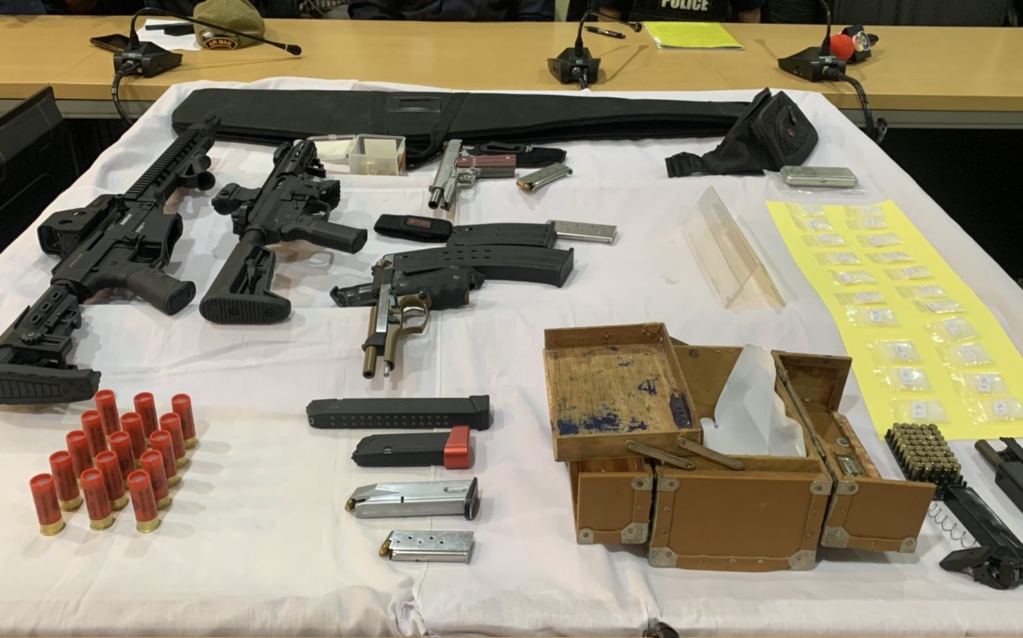 พล.ต.ท.ภัคพงศ์ เปิดเผยว่า จากการตรวจค้นสามารถจับกุมผู้ต้องหาตามหมายจับคดีอาวุธปืนได้ 3 คน คือ นายนราศักดิ์ ฟักทอง, นายอรรถพล สมเสือ และนายสราวุธ กฤษณะสุคนธ์ จับกุมผู้ต้องหาคดีครอบครองอาวุธปืนและยาเสพติด 1 คน คือ นายสันติรักศ์ คุมมงคล จากคุมผู้ต้องหาครอบครองยาเสพติด 1 คน คือ นายวรรัตน์ วงศ์เพ็ชรเขียว ยึดอาวุธปืนได้ 4 กระบอก ประกอบด้วย ปืนยาวแอสแต็ก ขนาด 9 มม. ลูกซองยาว ยี่ห้อ Derya, ปืนพกยี่ห้อ BERETTA ขนาด 9 มม. , ปืนพกยี่ห้อ Kimber ขนาด 11 มม. ทั้งหมดยึดได้จากบ้านของนายธนบดี อิ่มใจ หรือตั้ว มีทะเบียนถูกต้องทุกกระบอก เครื่องกระสุนอาวุธปืนลูกซอง และ 9 มม. จำนวน 137 นัด และยาเค 111.27 กรัม
