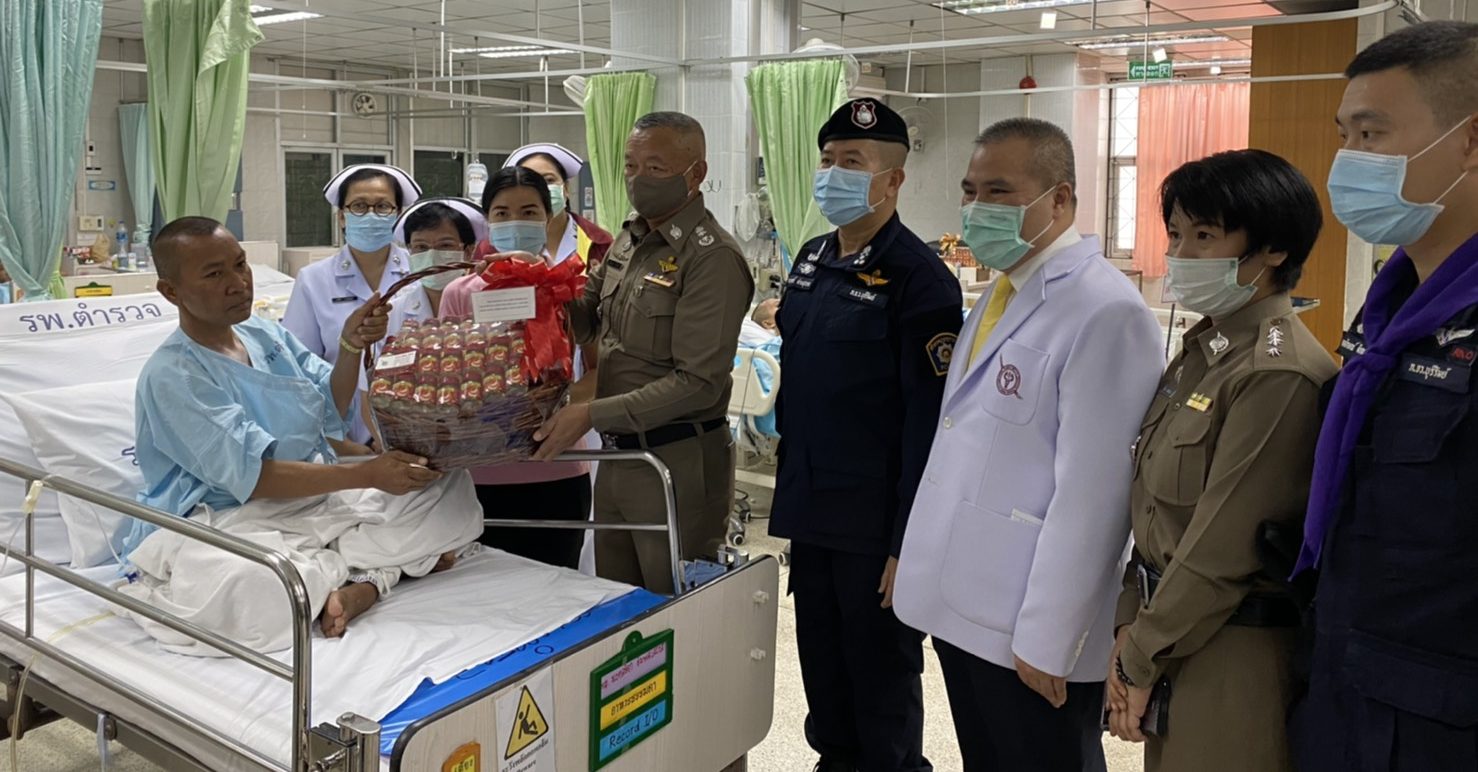 กทม.23 พ.ย.- ผู้ช่วย ผบ.ตร.และรองโฆษก ตร.เยี่ยมและมอบสิ่งของบำรุงขวัญ คฝ.มีอาการชักเกร็ง รักษาตัวที่ รพ.ตำรวจ 1 นาย