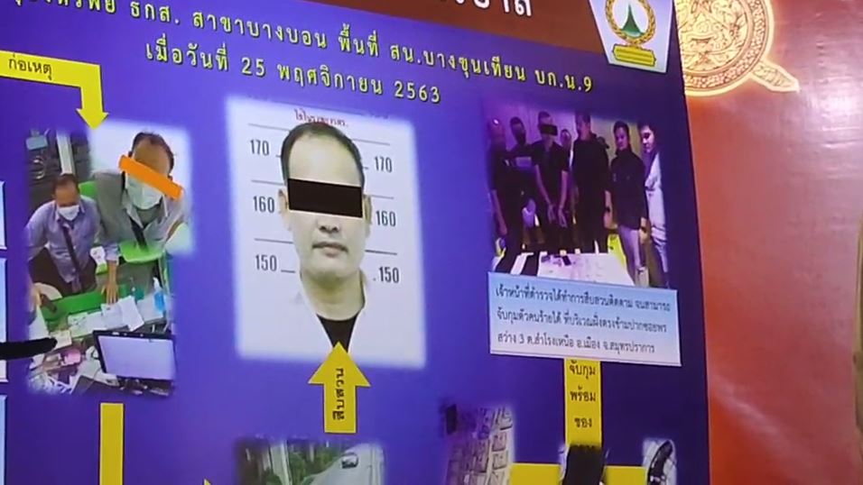 ที่กองบัญชาการตำรวจนครบาล (บช.น.) พล.ต.ต.ปิยะ ต๊ะวิชัย รอง ผบช.น. ในฐานะโฆษก บช.น. พร้อม พล.ต.ต.จิรพัฒน์ ภูมิจิตร รองผบช.น. พล.ต.ต.พงศ์อานันต์ คล้ายคลึง ผบก.น.9 พ.ต.อ.นครินทร์ สุคนธวิท รอง ผบก.น.9 และตำรวจ สน.บางขุนเทียน แถลงข่าวจับกุมนายไพบูลย์ สาระ อายุ 46 ปี ผู้ต้องหาตามหมายจับศาลอาญาธนบุรี ที่ 614/2563 ข้อหาชิงทรัพย์ พร้อมของกลาง เงินสด 391,390 บาท กระเป๋าสะพายสีดำ 1 ใบ ผ้าปิดปากสีฟ้า 1 ชิ้น สมุดพกสีเลือดหมู 1 เล่ม โทรศัพท์มือถือ 1 เครื่อง กางเกงกีฬาขาสั้น สีดำ 1 ตัว กางเกงยีนส์สีน้ำเงิน 1 ตัว กางเกงยีนส์สีดำ 1 ตัว และเสื้อยืดแขนสั้น สีฟ้า 1 ตัว โดยจับกุมได้ที่บริเวณฝั่งตรงข้ามปากซอยพรสว่าง 3 ต.สำโรงเหนือ อ.เมืองสมุทรปราการ จ.สมุทรปราการ