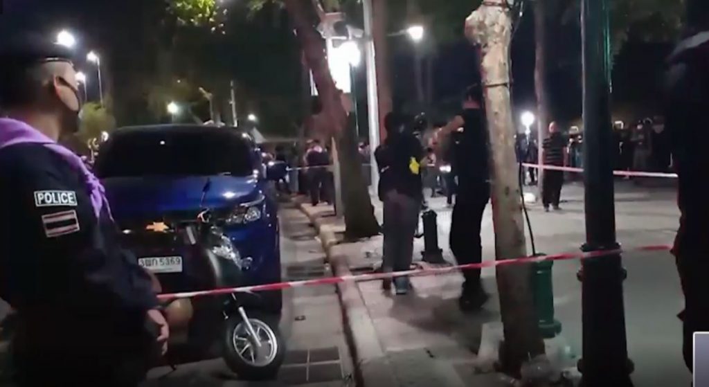 กทม. 1 ม.ค.-ระทึกก่อนเคาท์ดาวน์ปีใหม่ คนร้ายปาไปป์บอมบ์ ใส่กลุ่มการ์ดวีโว่ ที่มาจัดกิจกรรมขายกุ้งของเกษตรกร หน้ากองสลากเก่า บาดเจ็บ 4 คน เจ้าหน้าที่อยู่ระหว่างเก็บพยานหลักฐานต่างๆ ไปตรวจสอบเพิ่มเติม