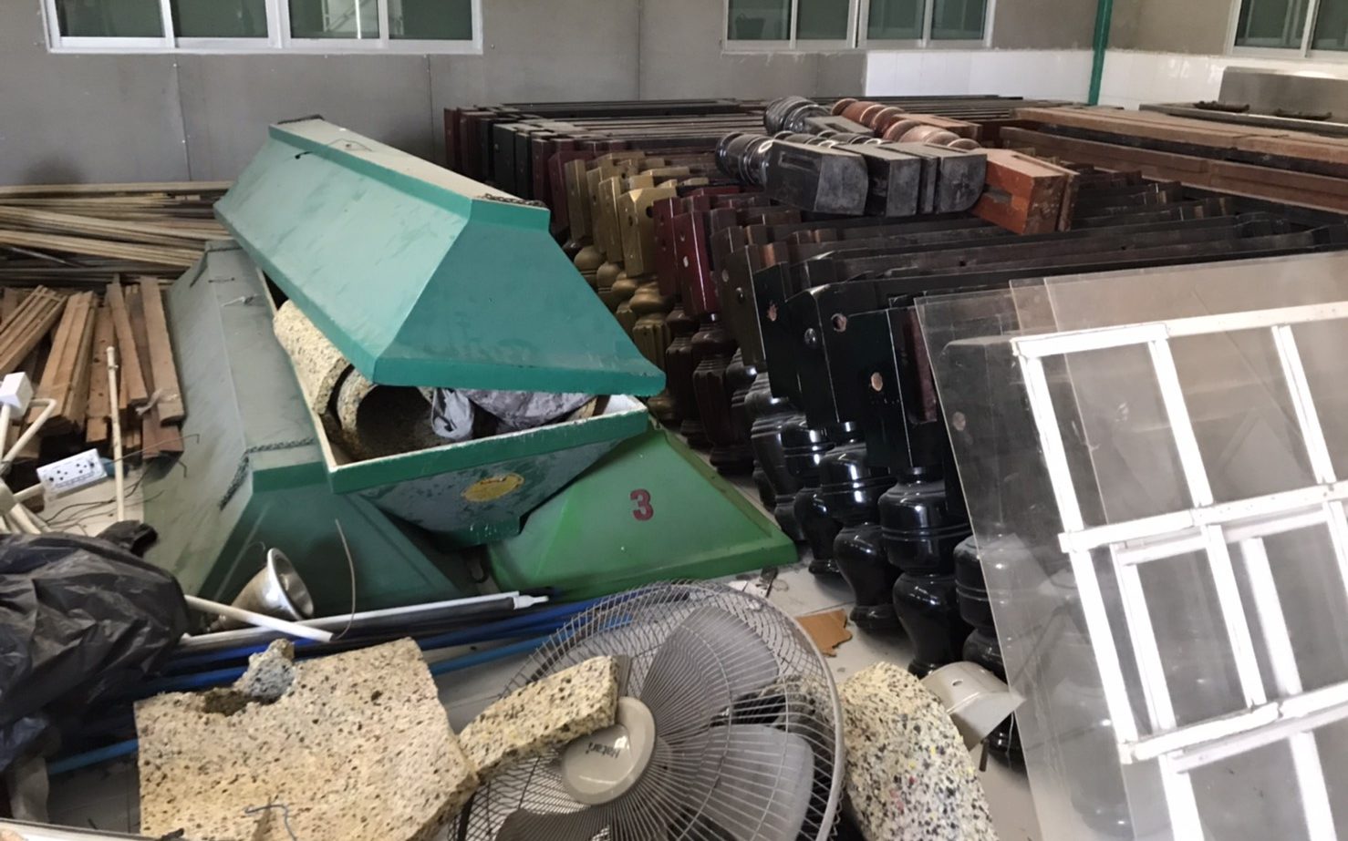 ภายใน พบอาคาร 3 หลัง มีโกดังขนาดใหญ่สูงชั้นเดียวอยู่ตรงกลาง และอาคารขนาดเล็กสูงชั้นเดียว 2 หลังขนาบข้างซ้ายขวา การตรวจค้น ภายในโกดังหน้า ด้านขวามือ พบกลอง หลอดไฟขนาดใหญ่ ซึ่งใช้กับ โต๊ะสนุ๊ก ด้านข้างตัวอาคาร ตรวจด้านในตัวอาคารพบโต๊ะสนุ๊ก ถูกแยกชิ้นส่วน กองอยู่จนเต็มเนื้อที่