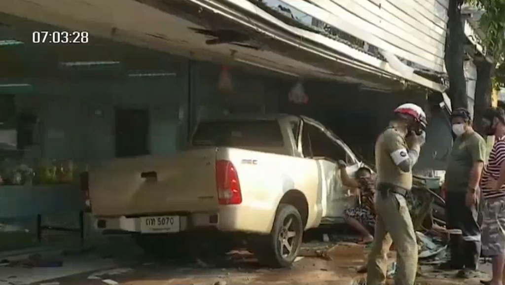ร้านขายอาหาร ตั้งอยู่บนถนนราษฎร์พัฒนา ซอยสุขสวัสดิ์ 27 เขตราษฎร์บูรณะ กรุงเทพฯ ตรงข้ามโรงเรียนโรจนนิมิต ใกล้เคียงโรงพยาบาลราษฎร์บูรณะ ถูกรถกระบะ ทะเบียน ถท 5070 กทม. พุ่งเข้าไปชนจนพังยับเยิน กระจกหน้าร้านแตกหลายบาน และมีผู้บาดเจ็บ 4 คน รวมทั้งคนขับ โดย 3 คน เป็นลูกค้าที่นั่งกินในร้าน มี 1 คน อาการสาหัส