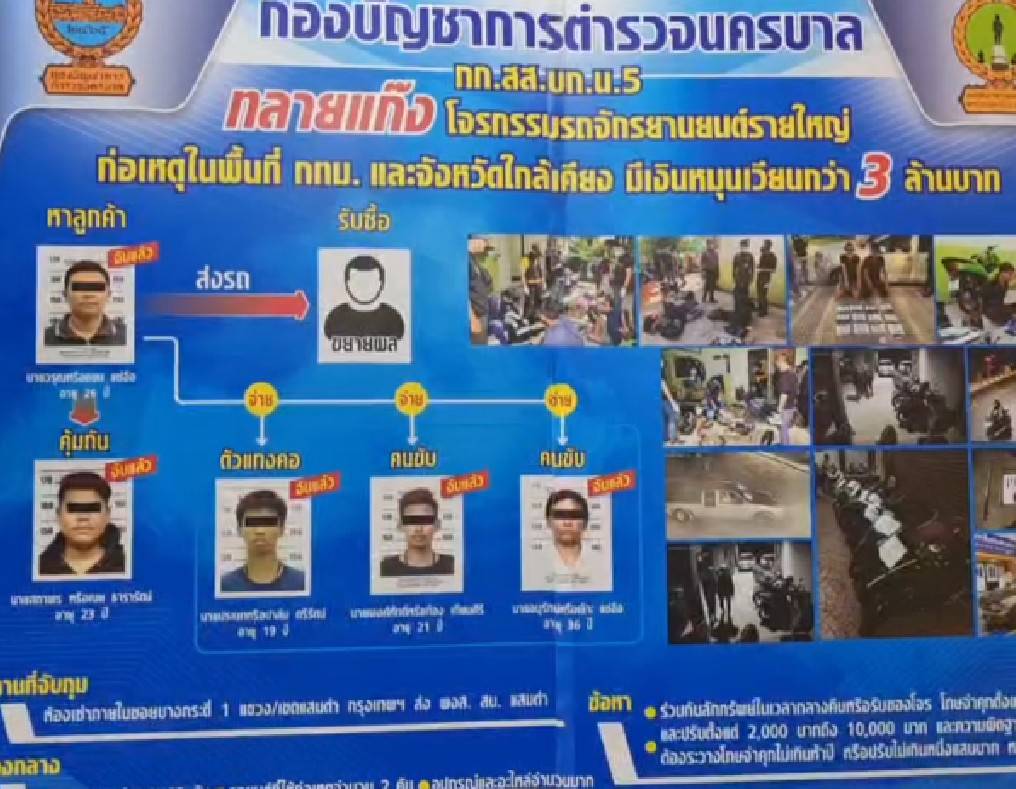 จากการสอบปากคำผู้ต้องหายังรับสารภาพอีกว่า เคยก่อเหตุโจรกรรมรถจักรยานยนต์รุ่นอื่นๆ ในเขตพื้นที่กรุงเทพฯ และพื้นที่ใกล้เคียง ในช่วง 7-8 เดือนที่ผ่านมามากกว่าร้อยครั้ง ได้รถ จักรยานยนต์มากกว่า 300 คัน