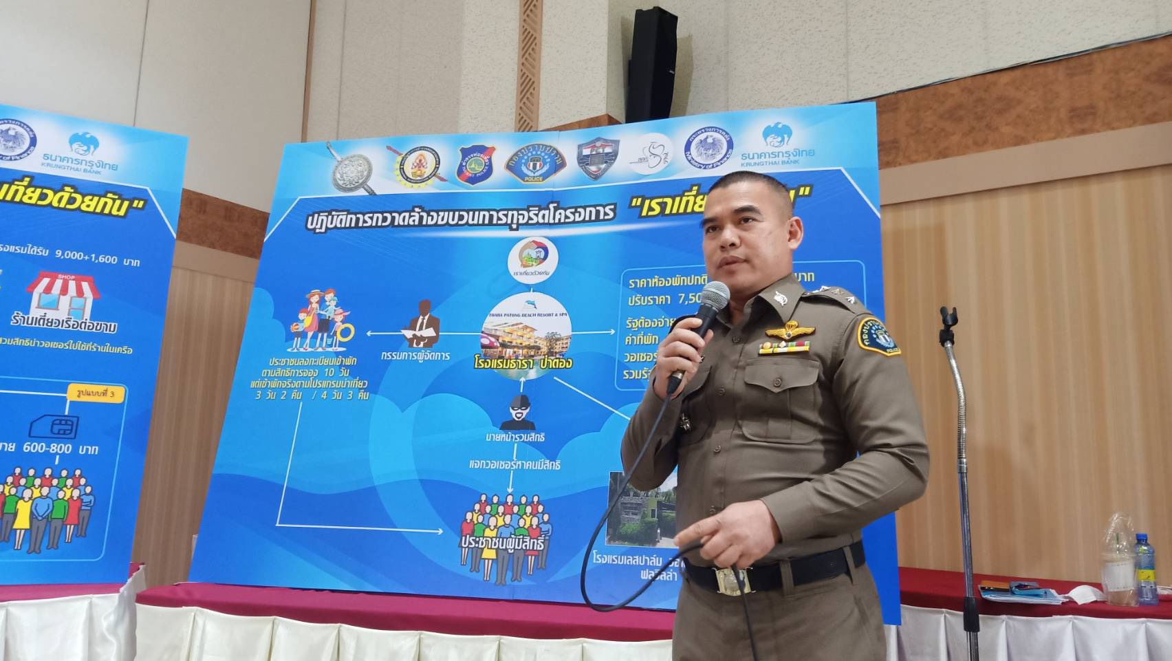 ส่วนการประชุมร่วมระหว่างตำรวจกับการท่องเที่ยวแห่งประเทศไทย หรือ ททท. เพื่อหามาตรการในการป้องกันการโกง หรือทุจริตโครงการต่าง ๆ ของรัฐที่ช่วยเหลือประชาชนที่เดือดร้อนในช่วงที่มีการแพร่ระบาดของโควิด-19 โดยเฉพาะโครงการ “เราเที่ยวด้วยกัน” จะเสนอธนาคารกรุงไทยให้ปรับปรุงระบบแอปพลิเคชัน ทั้งถุงเงิน และเป๋าตัง เพื่อปิดช่องโหว่การทุจริตและป้องกันความเสียหายให้รัฐ
