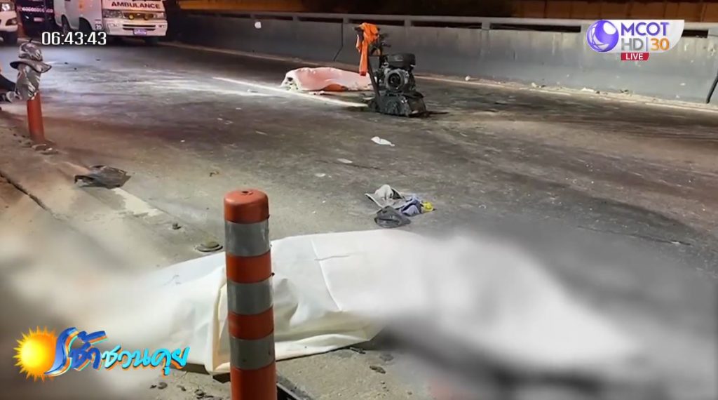 กรุงเทพฯ 1 ก.พ. – หนุ่มใหญ่ซิ่งกระบะพุ่งชนคนงานตีเส้นจราจรบนถนนกาญจนาภิเษก กลางดึก เสียชีวิต 2 ราย คนขับกระบะยืนรอมอบตัวกับตำรวจ