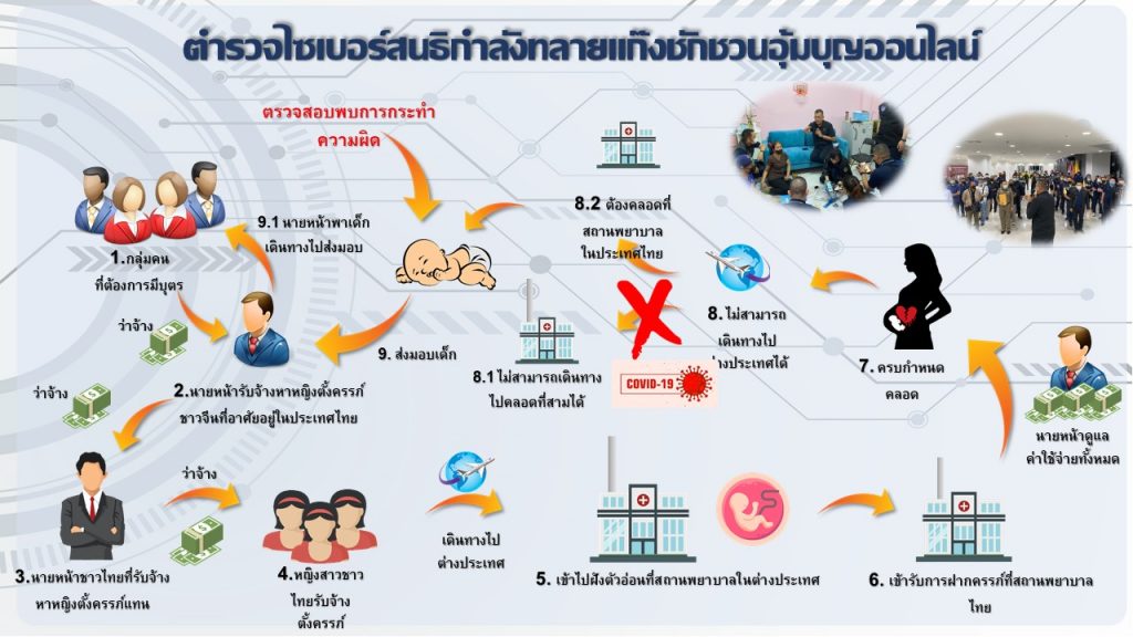 กทม.5 ก.พ.- ตำรวจไซเบอร์เปิดปฏิบัติการเข้าทลายขบวนการอุ้มบุญข้ามชาติ 10 จุด ในกรุงเทพฯ และปริมณฑล