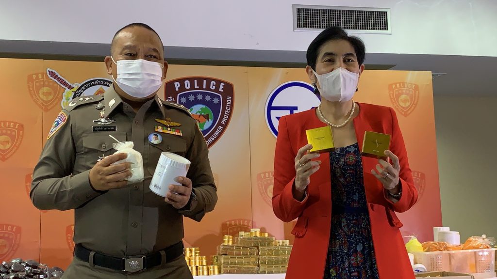 ขณะที่เภสัชกรหญิงสุภัทรา ระบุว่า ครีมเถื่อนที่ยึดได้ในครั้งนี้เป็นการสวมยี่ห้อของผลิตภัณฑ์ที่จดแจ้งอย่างถูกต้อง ซึ่งพบสิ่งที่แตกต่างกัน คือ สถานที่ผลิต โดยของแท้จะผลิตที่บางแค ส่วนของปลอมจะผลิตที่ จ.นครราชสีมา ทั้งนี้ พบว่าในครีมปลอมนั้นมีสารปรอทผสมด้วย ซึ่งถือเป็นสารอันตรายที่หากใช้ไปในระยะเวลานานแล้วจะทำให้เกิดผลข้างเคียงต่อร่างกาย คาดว่าโรงงานปลอมมีการผลิตมาประมาณ 2 ปี. -สำนักข่าวไทย
