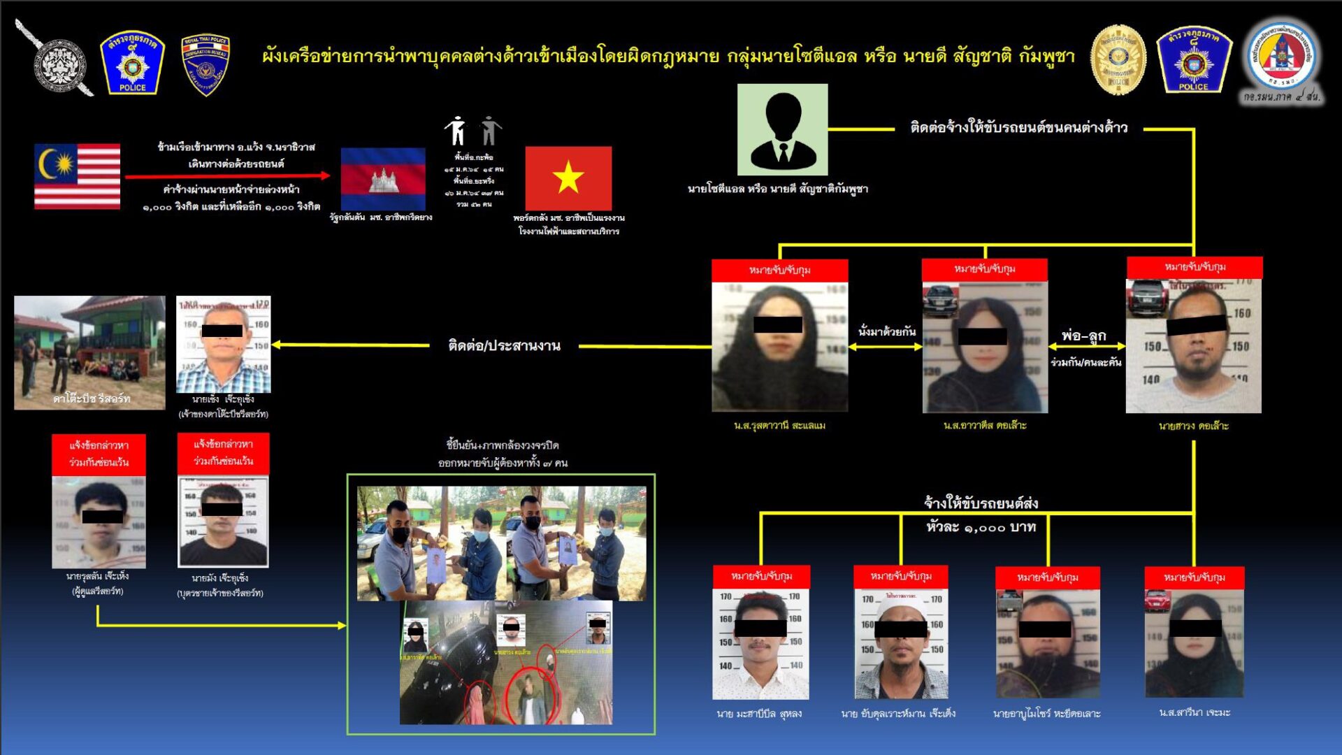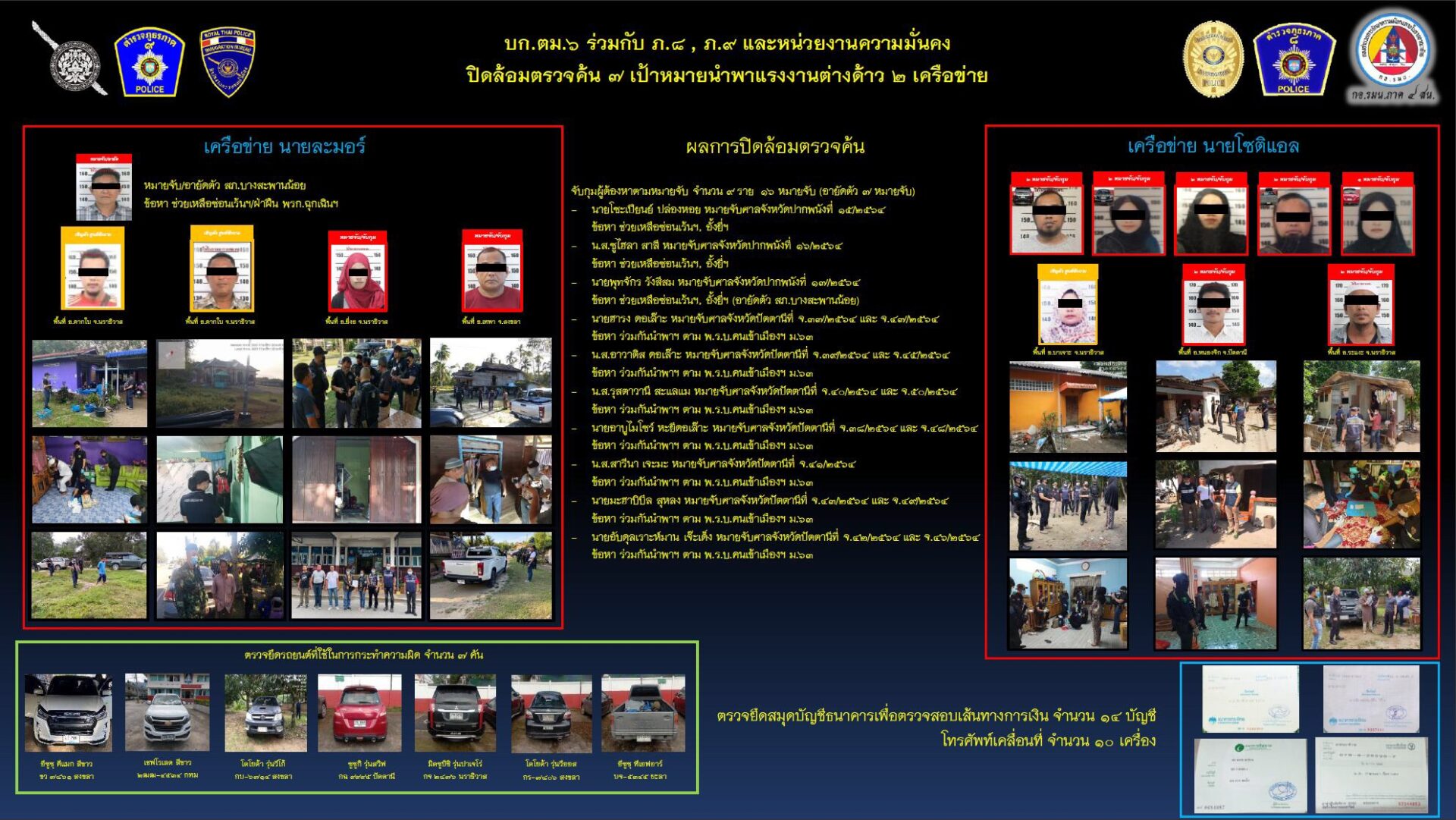 พล.ต.อ.สุวัฒน์ แจ้งยอดสุข ผู้บัญชาการตำรวจแห่งชาติ (ผบ.ตร.) แถลงผลปฏิบัติการกวาดล้างขบวนการลักลอบขนแรงงานต่างด้าวผิดกฎหมายเข้ามาในประเทศไทย ในห้วงระหว่างวันที่ 1 มกราคม – 11 กุมภาพันธ์ที่ผ่านมา จับกุมขบวนการหรือเครือข่ายนำพาแรงงานต่างด้าวมากกว่า 10 เครือข่าย, จับกุมผู้ลักลอบขนนำพาแรงงานต่างด้าวผิดกฎหมาย 29 ราย, จับกุมผู้ช่วยเหลือซ่อนเร้นแรงงาน 91 ราย, จับกุมแรงงานต่างด้างหลบหนีเข้าเมืองผิดกฎหมาย 396 ราย และยึดรถของกลางได้ 22 คัน