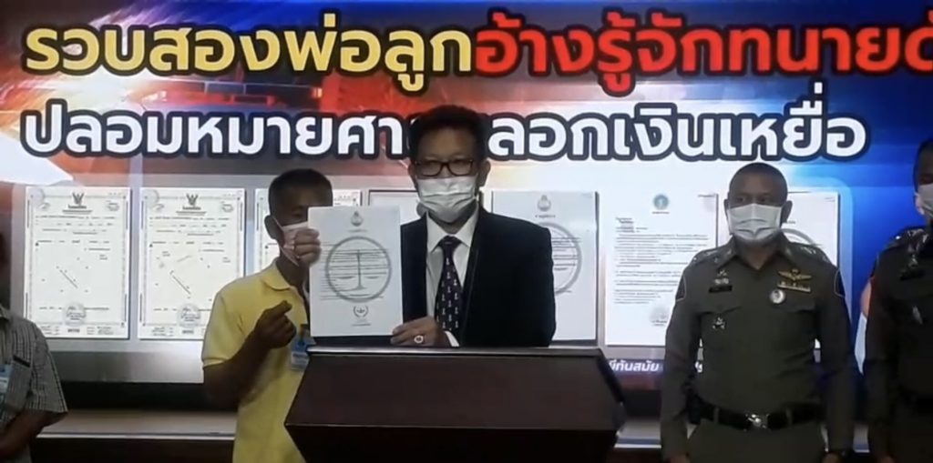 กทม. 18 ก.พ.- ตำรวจกองปราบ จับกุมผู้ต้องหาพ่อลูก อ้างรู้จักทนายชื่อดัง ปลอมหมายศาลอายัดทรัพย์ หลอกเงินเหยื่อ เสียหายกว่า 6 ล้าน