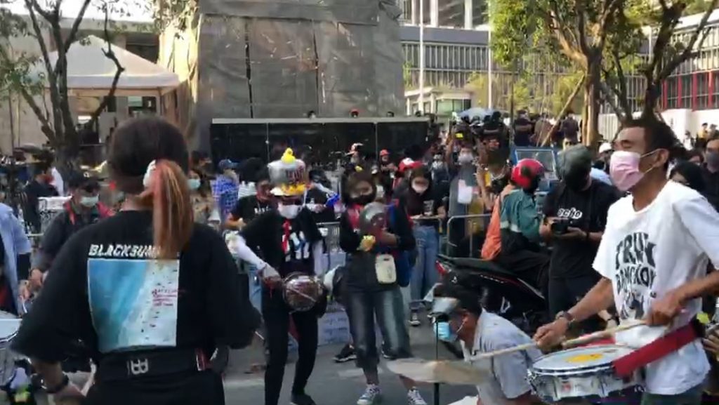 จากนั้น “รุ้ง ปนัสยา” เข้าเจรจากับตำรวจหน้าสภา ยืนยันจะชุมนุมโดยสงบไม่มีเวทีปราศรัย ใช้รถซาเล้งติดเครื่องเสียงเท่านั้น ขณะที่บริเวณหน้ารัฐสภา ได้ปิดรั้วไม่ให้บุคคลที่เกี่ยวข้องเข้า-ออก ส่วนกลุ่มผู้ชุมนุมเริ่มเล่นดนตรีบนถนน หรือ Art Street สีสันบนถนนก่อนจะมีการปราศรัยของแกนนำต่อไป.-สำนักข่าวไทย