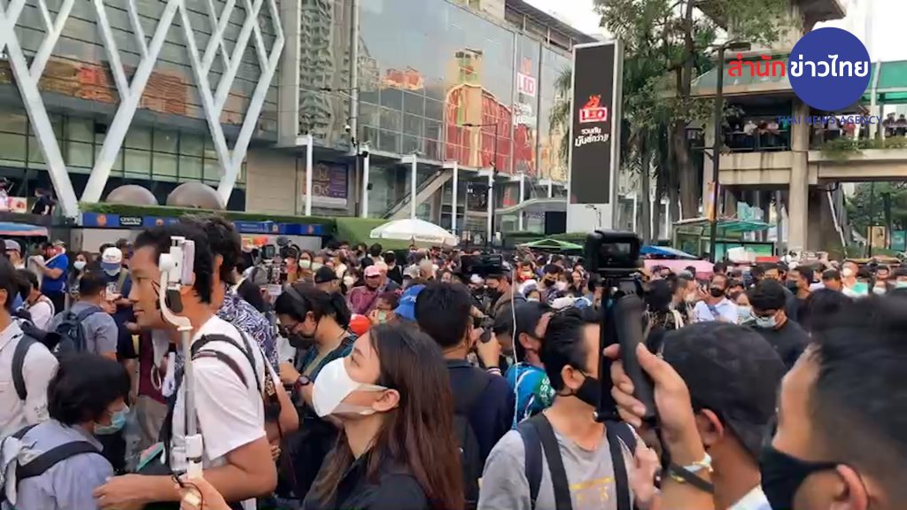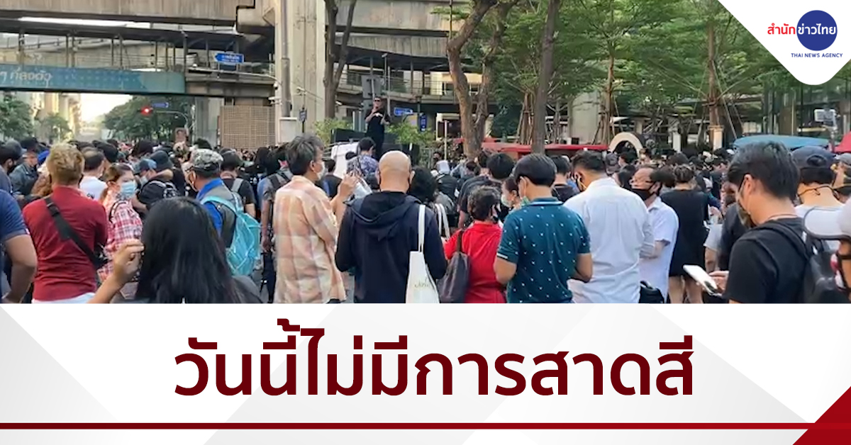 กรุงเทพฯ 23 ก.พ.-กลุ่มผู้ชุมนุมเคลื่อนขบวนจากราชประสงค์ไปยังสำนักงานตำรวจแห่งชาติ ยืนยันวันนี้ไม่มีการสาดสี