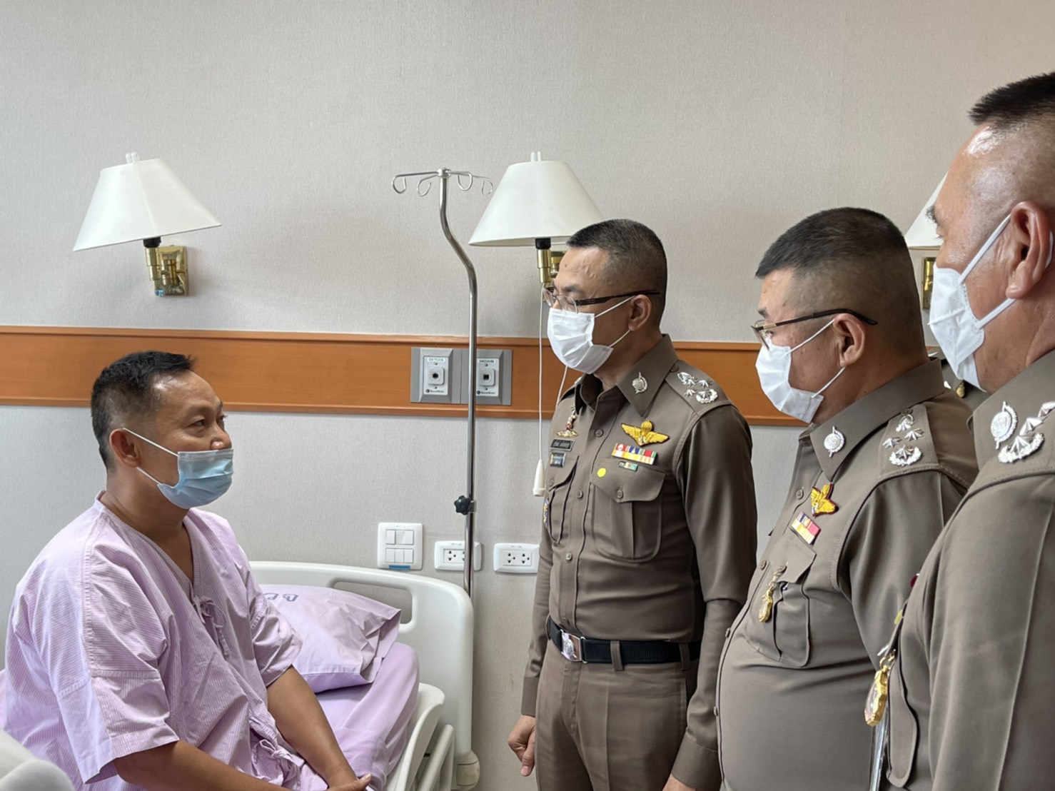 พล.ต.อ.สุวัฒน์ แจ้งยอดสุข ผู้บัญชาการตำรวจแห่งชาติ(ผบ.ตร.) พร้อมด้วยพลตำรวจโทภัครพงษ์ พงศ์เภตรา ผู้บัญชาการตำรวจนครบาล(ผบช.น.) เข้าเยี่ยมอาการตำรวจที่ได้รับบาดเจ็บจากการกระชับพื้นที่การชุมนุมเมื่อคืนที่ผ่านมา ซึ่งเข้ารับการรักษาตัวอยู่ที่โรงพยาบาลตำรวจ จำนวน 25 คน พร้อมมอบเงินบำรุงขวัญกำลังใจ