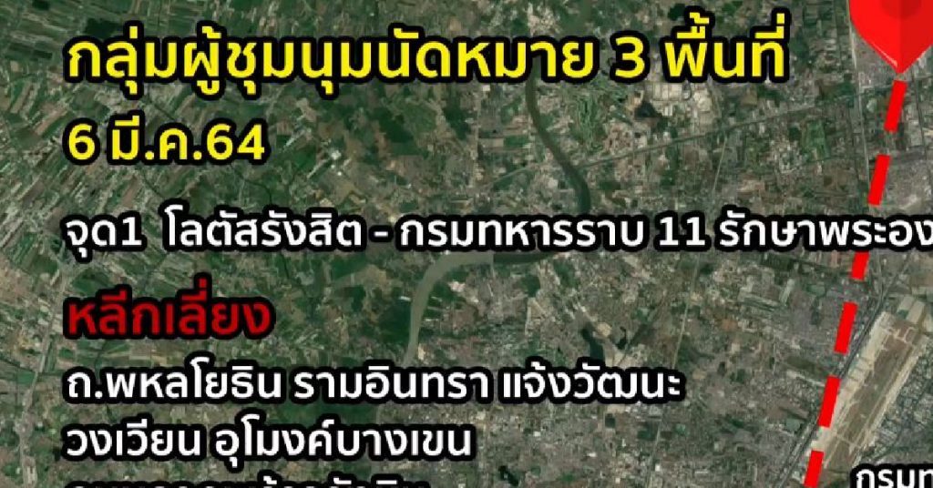 กรุงเทพฯ 5 มี.ค. – ตำรวจจัดกำลัง 400 นาย ดูแลม็อบนัดชุมนุม 3 จุด พรุ่งนี้ (6 มี.ค.) พร้อมแนะนำเลี่ยงการใช้ถนนที่มีม็อบชุมนุม รวมถึงขั้นตอนการดูแลการชุมนุมสาธารณะ