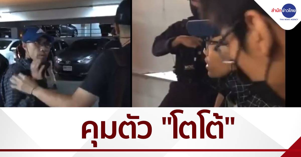 กทม. 6 มี.ค.-ตำรวจชุดอรินทราช คุมตัว “โตโต้” แกนนำกลุ่มการ์ดวีโว่ บริเวณลานจอดรถห้างเมเจอร์รัชโยธิน ไปสอบปากคำที่ ตชด. ภาค1