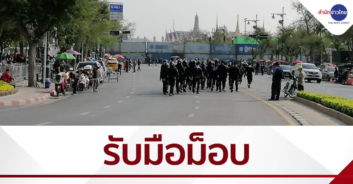 ขณะที่บรรยากาศรักษาความปลอดภัย เจ้าหน้าที่ได้นำตู้คอนเทนเนอร์ มาวางปิดกั้นถนนราชดำเนินใน ตั้งแต่บริเวณแนวรั้วศาลฎีกา ว่างยาวผ่ากลางท้องสนามหลวง ไปจนถึงด้านหน้ามหาวิทยาลัยธรรมศาสตร์ ความสูง 2 ชั้น โดยไม่อนุญาตให้ผู้ชุมเข้าใกล้พื้นที่เขตพระราชฐาน 150 เมตร พร้อมนำลวดหนามมาวางด้านหน้าตู้คอนเทนเนอร์อีกชั้น โดยมีกำลังตำรวจควบคุมฝูงชนของนครบาล มาเฝ้าสังเกตการณ์ ฝั่งประตูทางเข้าสนามหลวง ด้านหน้าศาลฎีกาด้วย.-สำนักข่าวไทย