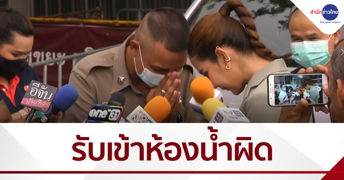 ด้านตำรวจนายดังกล่าว เปิดเผยว่า วันเกิดเหตุเข้าเวรทำงานตั้งแต่ช่วงตี 5 ครึ่ง จนถึง 5 ทุ่ม ก่อนหน้านั้นต้องรับผิดชอบงานจราจร และไปดูแลการชุมนุม อีกทั้งมีการทำงานลากยาวติดสะสมแบบนี้มาหลายวันแล้ว จึงทำให้เกินความเบลอ และพลาดเดินเข้าห้องน้ำผู้หญิง ทั้งนี้ การมายัง สน.พหลโยธิน ในวันนี้ ต้องการแสดงความบริสุทธิ์ใจว่าในวันนั้นไม่ได้มีเจตนาจะตามไปถ่ายคลิป หรือตามไปก่อเหตุอนาจารอะไร อีกทั้งเหตุที่มีการขับรถหลบหนีออกจากปั๊มโดยไม่อธิบายหรือชี้แจงอะไร เพราะเห็นหมิวถือมีดและส่งเสียงดัง จึงเกิดความกลัว อย่างไรก็ตาม ได้มีการขอโทษ พร้อมรับผิดทุกอย่าง ไม่ว่าจะเป็นเรื่องทางอาญาหรือทางวินัย