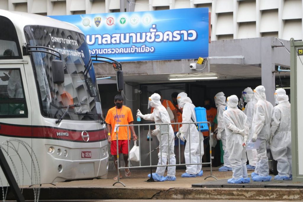 นพ.ปรีชา เปรมปรี รองอธิบดีกรมควบคุมโรค พล.ต.ท.โสภณรัชต์ สิงหจารุ แพทย์ใหญ่ โรงพยาบาลตำรวจ และ พล.ต.ท.สมพงษ์ ชิงดวง ผู้บัญชาการสำนักงานตรวจคนเข้าเมือง ไปตรวจดูขั้นตอนการเคลื่อนย้ายผู้ต้องกักที่ติดโรคโควิด-19 อยู่ที่โรงพยาบาลสนามชั่วคราว โรงยิมสวัสดิการตำรวจ และได้รับการรักษาจนหายเป็นปกติแล้ว จำนวน 82 ราย ไปยังห้องกัก 1 สำนักงานตรวจคนเข้าเมือง ซอยสวนพลู เพื่อรอผลักดันส่งกลับประเทศต่อไป