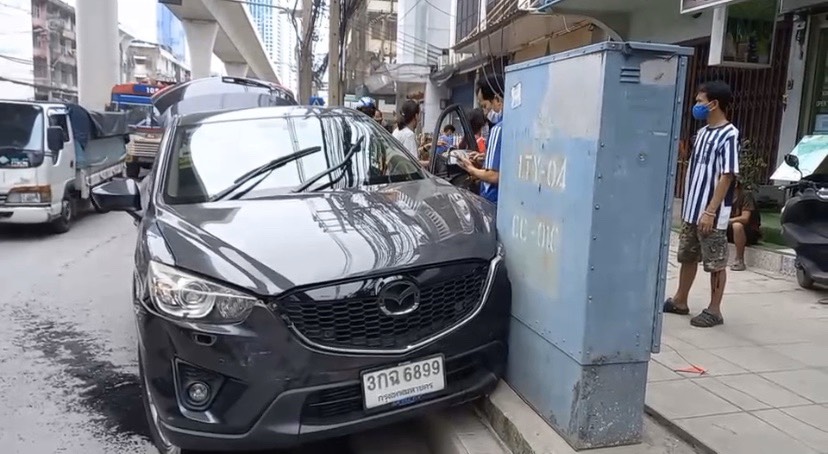 กทม.22 เม.ย.- หนุ่มใหญ่วัย 61 โรคประจำตัวกำเริบขับรถพุ่งชนท้ายกระบะ และตู้ชุมสายโทรศัพท์ ย่านเจริญนคร วิน จยย.ทุบกระจก เร่งนำร่างออกมาหวั่นไฟไหม้รถ