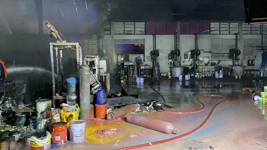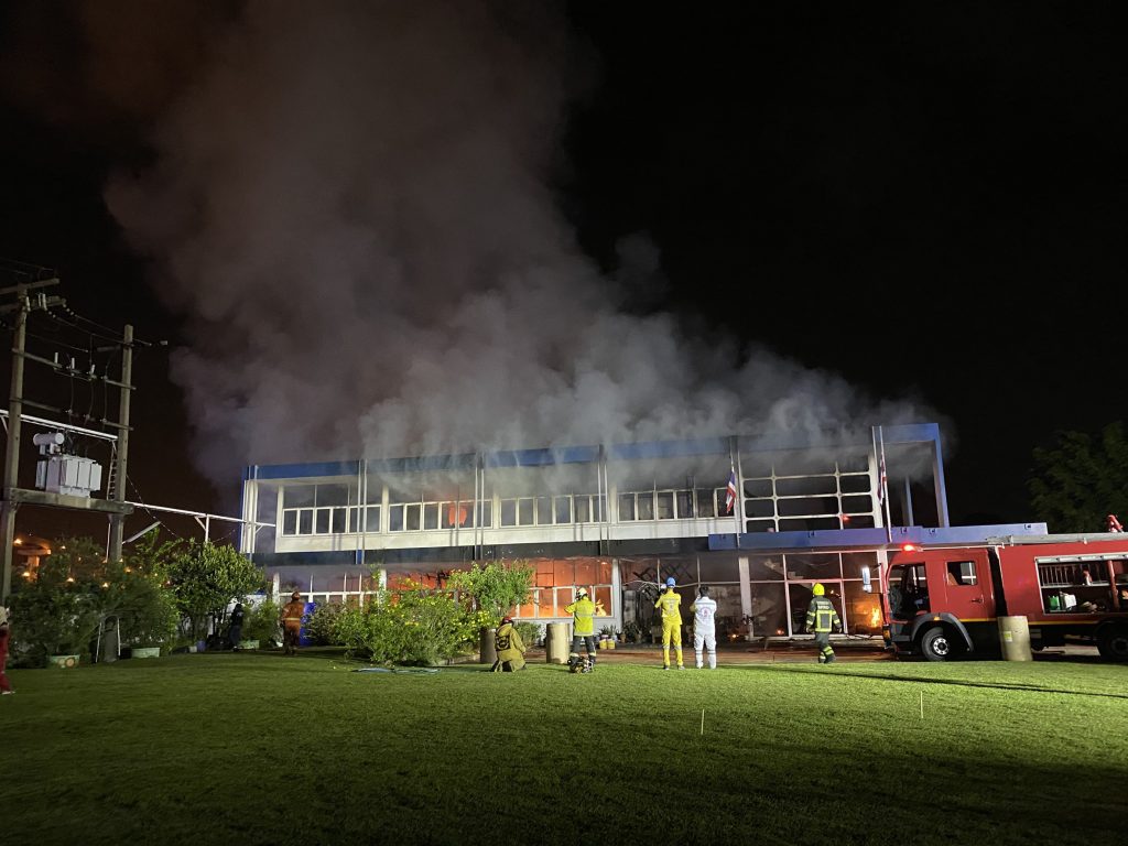 ที่เกิดเหตุลักษณะเป็นอาคารสำนักงาน สูง 2 ชั้น ด้านหลังเป็นโรงงานผลิตสีน้ำมัน ปลูกในรั้วรอบขอบชิด พบกลุ่มควันสีดำและแสงเพลิงพวยพุ่งออกมาจากบริเวณชั้นที่ 1 ก่อนลุกลามขึ้นไปยังชั้นที่ 2 อย่างรวดเร็ว เจ้าหน้าที่ใช้เวลาประมาณ 20 นาที จึงสามารถควบคุมเพลิงไว้ได้ ตรวจสอบเบื้องต้นไม่มีผู้ได้รับบาดเจ็บหรือเสียชีวิต