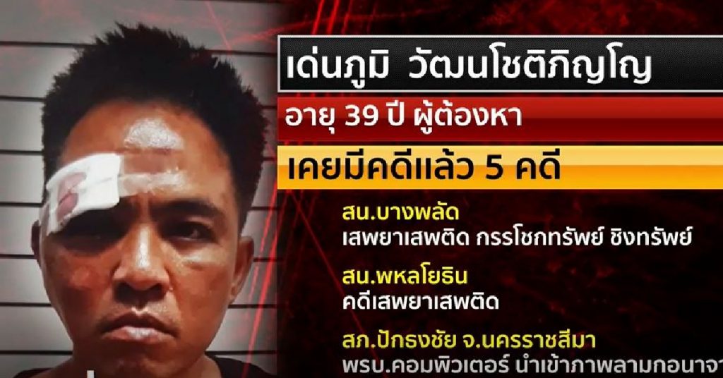 ทั้งนี้ พบว่านายเด่นภูมิเคยมีคดีเเล้ว 5 คดี แบ่งเป็นพื้นที่ สน.บางพลัด 3 คดี ได้เเก่ คดีเสพยาเสพติด กรรโชกทรัพย์ เเละชิงทรัพย์, สน.พหลโยธิน คดีเสพยาเสพติด และ สภ.ปักธงชัย จ.นครราชสีมา ความผิด พ.ร.บ.คอมพิวเตอร์ ข้อหานำเข้าภาพลามกอนาจารสู่ระบบคอมพิวเตอร์