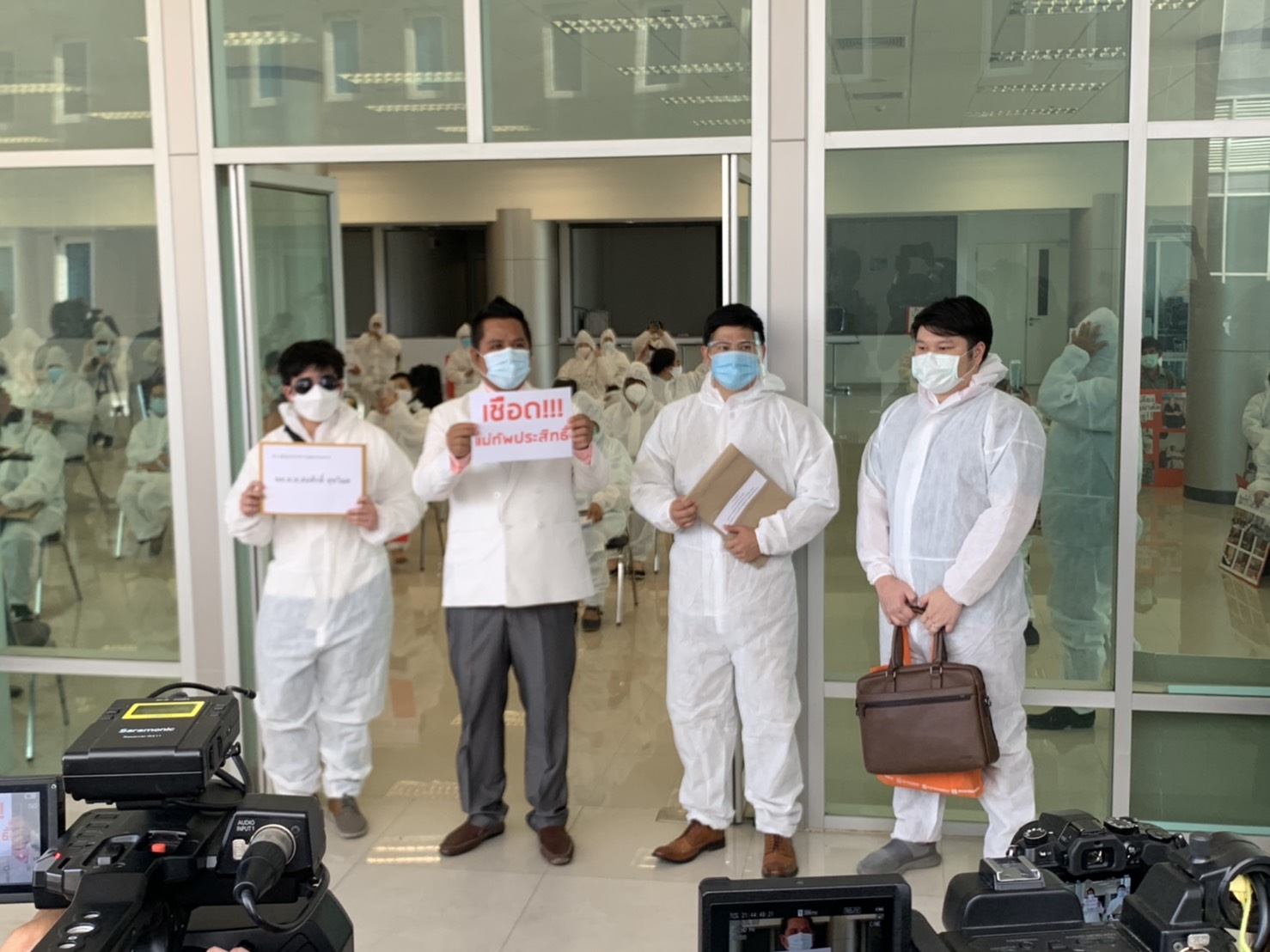 19 พ.ค. – ผู้เสียหายเกือบร้อยคน สวมชุดสีขาวเพื่อป้องกันการติดเชื้อ พร้อมทนายรณณรงค์ แก้วเพ็ชร์ ประธานเครือข่ายรณรงค์ทวงคืนความยุติธรรมในสังคม เดินทางมาที่กองบัญชาการสอบสวนกลาง ซึ่งเป็นผู้เสียหายจากคดีฉ้อโกงพันล้าน เครือข่ายนายประสิทธิ์ เจียวก๊ก เข้ายื่นหนังสือถึงพลตำรวจโทต่อศักดิ์ สุขวิมล ผู้บัญชาการตำรวจสอบสวนกลาง เพื่อขอให้ติดตามเร่งรัดคดีและออกคำสั่งไปยังกองบังคับการปราบปราม ยึดอายัดทรัพย์ผู้เกี่ยวข้องในขบวนการที่มีมูลค่าความเสียหายจากธุรกิจที่มีค่าความเสียหายกว่า 209 ล้านบาท โดยพลตำรวจตรีปัญญา ปิ่นสุข รองผู้บัญชาการกองบัญชาการตำรวจสอบสวนกลาง เป็นผู้รับเรื่องแทน