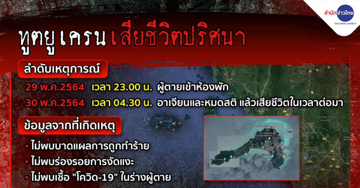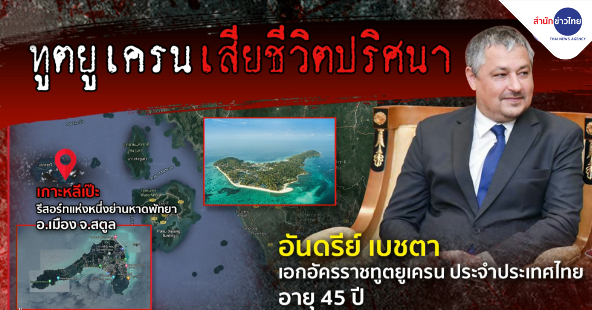ย้อนกลับไปเมื่อเช้าวานนี้ (30 พ.ค.) ตำรวจ สภ.เกาะหลีเป๊ะ เข้าตรวจสอบรีสอร์ตแห่งหนึ่ง พื้นที่หมู่ 8 ต.เกาะสาหร่าย อ.เมืองสตูล หลังได้รับแจ้งว่ามีผู้เสียชีวิต ในที่เกิดเหตุพบศพ Mr.Andrii Beshta (อันดรีย์ เบชตา) อายุ 45 ปี เอกอัครราชทูตยูเครนประจำประเทศไทย ซึ่งชันสูตรเบื้องต้นไม่พบบาดแผล และไม่พบร่องรอยการถูกทำร้าย ส่วนที่เกิดเหตุไม่พบร่องรอยงัดแงะ หรือการต่อสู้ใดๆ