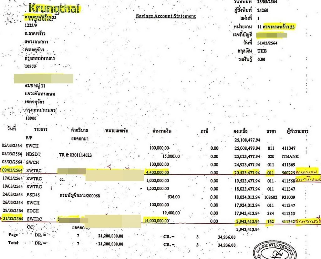 นอกจากนั้น ยังหลอกให้ปิดบัญชีสหกรณ์ออมทรัพย์จุฬาลงกรณ์มหาวิทยาลัย แล้วให้นำเงินเข้าบัญชีที่ธนาคารกรุงไทย สาขาลาดพร้าว 33 ในวันที่ 29 /4/2564 จำนวน 13,092,466.16 บาท เพื่อเตรียมจะหลอกให้ถอนเงินอีก แต่โชคดีที่คนดูแลเห็นผิดปกติจึงรีบแจ้งญาติทราบและตรวจสอบ จนกระทั่งทราบความจริง จากธนาคารกรุงไทย สาขาลาดพร้าว 33 ว่าเงินถูกถอนออกจากบัญชีธนาคารกรุงไทย ต่างสาขา ไปจำนวน 21,800,000 บาท เมื่อทวงถามกลับอ้างว่า ผู้เสียหายให้โดยเสน่หาและไม่ยอมคืนให้ แถมยังท้าทายให้ไปแจ้งความ ดังนั้นในวันพรุ่งนี้ ตนจะพา ผู้เสียหายไปแจ้งความดำเนินคดีมิจฉาชีพรายนี้ในข้อหา ข้อหาลักทรัพย์ ฉ้อโกงและความผิดอื่นที่เกี่ยวข้อ.-สำนักข่าวไทย