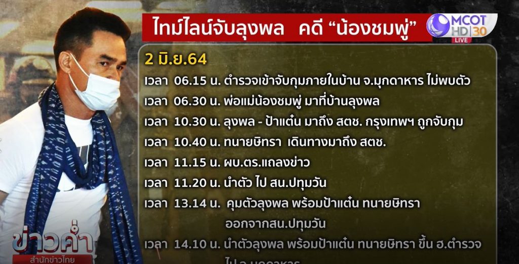 2 มิ.ย. – ยืดเยื้อนับปี การดำเนินคดีอาญาคดีน้องชมพู่ วันนี้เริ่มนับหนึ่งแล้ว เพราะในที่สุด “ลุงพล” ผู้ต้องสงสัยหมายเลข 1 ในคดีนี้ ถูกตำรวจซ้อนแผน-ดัดหลัง ทำทีเปิดโอกาสให้ลุงพลเข้ามามอบตัวที่ สตช. แต่พอปรากฏตัวก็เข้าชาร์จจับกุมใส่กุญแจมือทันที พร้อมแจ้ง 3 ข้อหา ก่อนส่งตัวขึ้นเฮลิคอปเตอร์กลับไปดำเนินคดีที่ สภ.กกตูม จ.มุกดาหาร