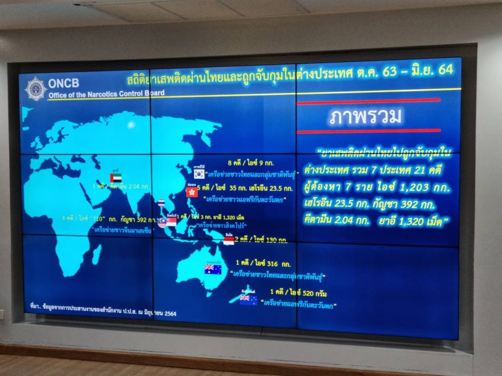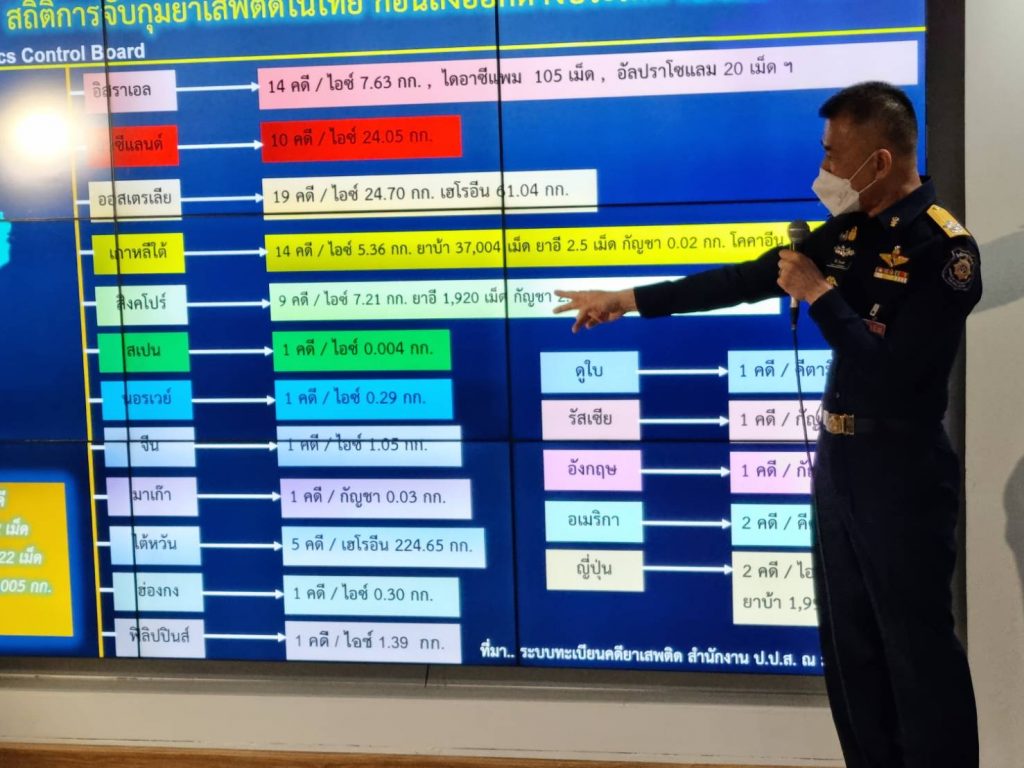 การจับกุมยาเสพติดในประเทศ โดยเฉพาะไอซ์ และเฮโรอีน นับตั้งแต่ปลายปี 2562 มีปริมาณมากขึ้นในทุกๆ ปี ซึ่งมากกว่าจำนวนที่หลุดรอดไปปลายทาง เช่น ออสเตรเลีย ญี่ปุ่น ไต้หวัน ฮ่องกง ฯลฯ ซึ่งได้สั่งการให้ทุกหน่วยประสานความร่วมมือกับประเทศปลายทางเพื่อดำเนินการจับกุม