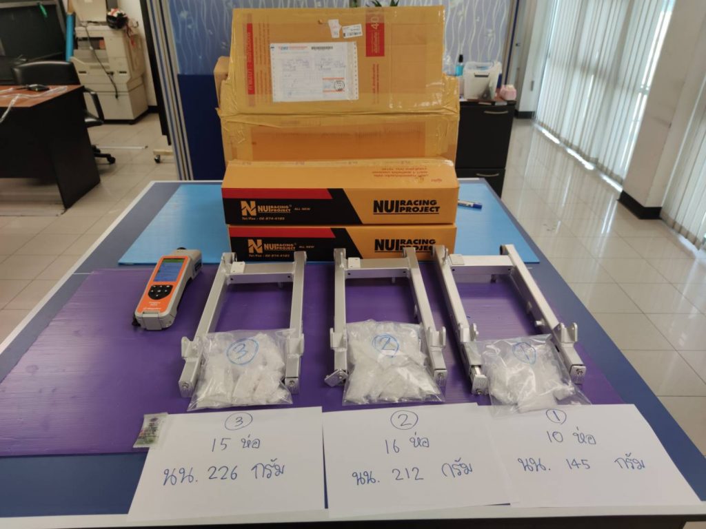 สุวรรณภูมิ 12 มิ.ย.-หน่วยสกัดกั้นยาเสพติดท่าอากาศยาน ยึดไอซ์ 580 กรัม ซุกซ่อนในอะไหล่ จยย. ในคลังสินค้าท่าอากาศยานสุวรรณภูมิ เตรียมส่งไปนิวซีแลนด์