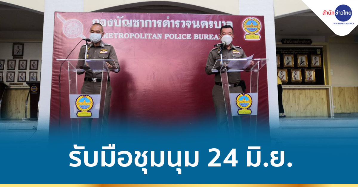 พล.ต.ต.ปิยะ ต๊ะวิชัย รองผู้บัญชาการตำรวจนครบาล ฐานะโฆษกกองบัญชาการตำรวจนครบาล เปิดเผยการเตรียมพร้อมดูแลการชุมนุม วันที่ 24 มิ.ย.นี้ว่า มีกลุ่มต่างๆ ได้แก่ กลุ่มหมู่บ้านทะลุฟ้า นำโดยนายชาติชาย ไพริน ที่อนุสรณ์สถาน 14 ตุลาฯ จะจัดกิจกรรมรำลึกเหตุการณ์อภิวัฒน์ สยาม 2475 เวลา 13.00 น., กลุ่มประชาชนคนไทย นิธิธร ล้ำเหลือ ที่หน้าทำเนียบรัฐบาล กดดันนายกรัฐมนตรี ลาออก เวลา 12.00 น., กลุ่มเครือข่ายคนรุ่นใหม่นนทบุรี นำโดยนายเจษฎา ศรีปรั่ง ที่อนุสาวรีย์ประชาธิปไตย เวลา 11.00 น., กลุ่มคนไทยไม่ทน คณะสามัคคีประชาชนเพื่อประเทศไทย นำโดยนายจตุพร พรหมพันธุ์ หน้าทำเนียบรัฐบาล