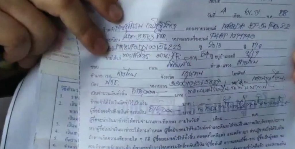 ตายายยืนยันผ่อนรถหมด มีการโอนรถมาเป็นชื่ออย่างถูกต้องตามกฎหมาย มีทั้งสัญญาซื้อขาย เอกสารผ่อนชำระเงิน เล่มรถยนต์ที่กรมการขนส่งทางบกออกให้ ซึ่งก่อนการซื้อขายรถคันนี้ ก็ให้เพื่อนบ้านที่ทำอู่รถมาช่วยดูว่าเลขตัวถังรถและเอกสารอื่นๆ ตรงกันหรือไม่ ก็ไม่มีอะไรผิดปกติ ก่อนจะโอนรถก็นำไปตรวจที่ ตรอ. ก็ไม่มีอะไรผิดปกติ