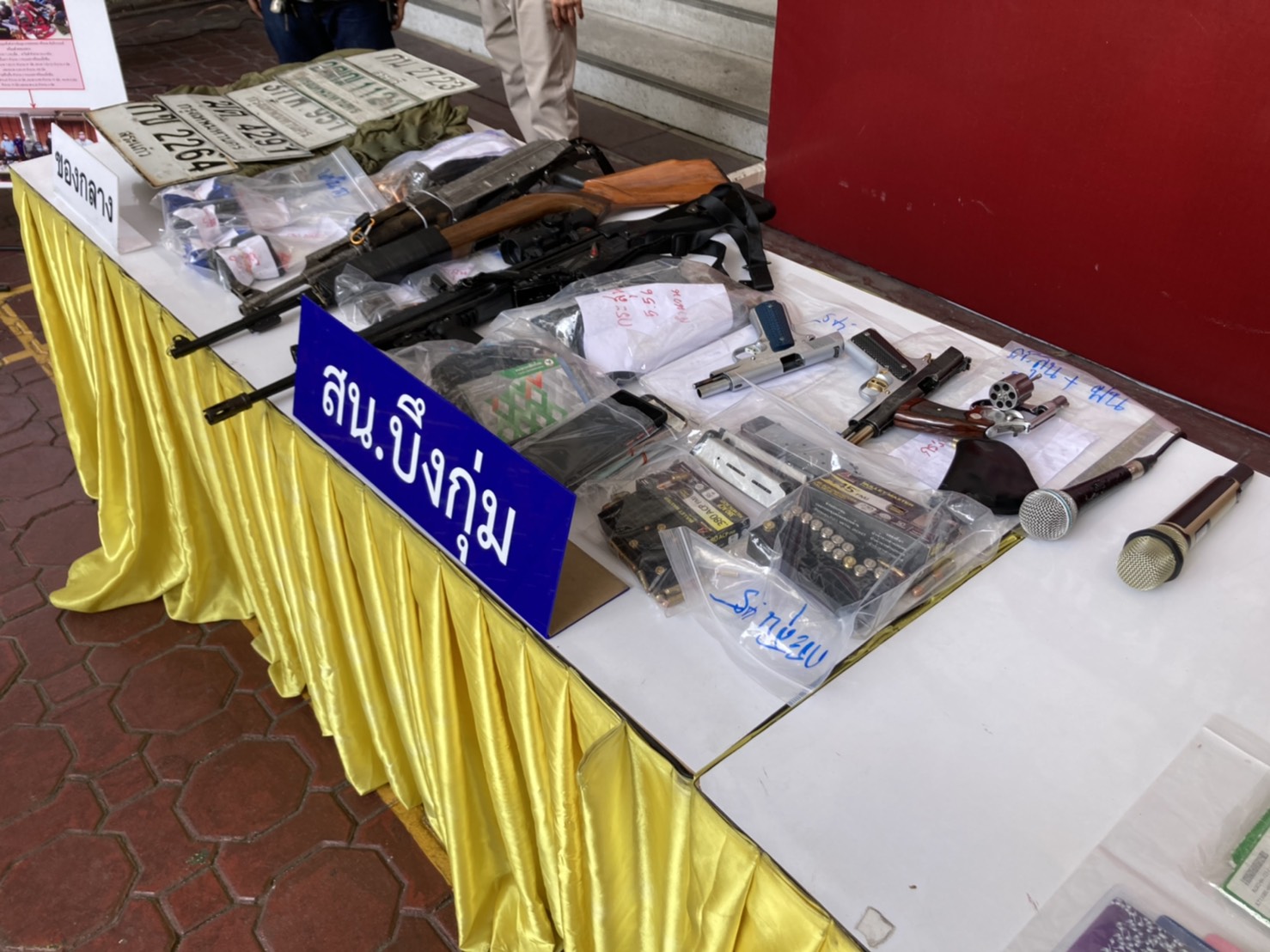 พล.ต.ท.ภัคพงศ์ พงษ์เพตรา ผู้บัญชาการตำรวจนครบาล แถลงการจับกุมขบวนการค้ายาเสพติด รายสำคัญในพื้นที่กรุงเทพมหานคร 2 คดี คดีแรกตำรวจฝ่ายสืบสวน สน.บึงกุ่ม จับกุมนายอลงกต คัมภิรานนท์ อายุ 26 ปี พร้อมของกลาง ยาบ้า 7130 เม็ด ยาไอซ์ 24 กรัม ปืนสงครามและอาวุธปืนสั้นรวม 6 กระบอกและเครื่องกระสุน รถยนต์อีก 2 คันโดยเป็นการขยายผลการจับกุมผู้ค้ายาเสพติดกลุ่ม “เสธ เหว๋ย” ซึ่งใช้การติดต่อกันผ่านช่องทางแอพพลิเคชันไลน์ เพื่อนัดหมายรับยาเสพติดก่อนจัดส่งยาเสพติดให้ลูกค้าทางพัสดุไปรษณีย์เอกชน โดยผู้ต้องหารายนี้เป็นผู้ส่งยาเสพติดให้ผู้ค้าของเครือข่ายดังกล่าว
