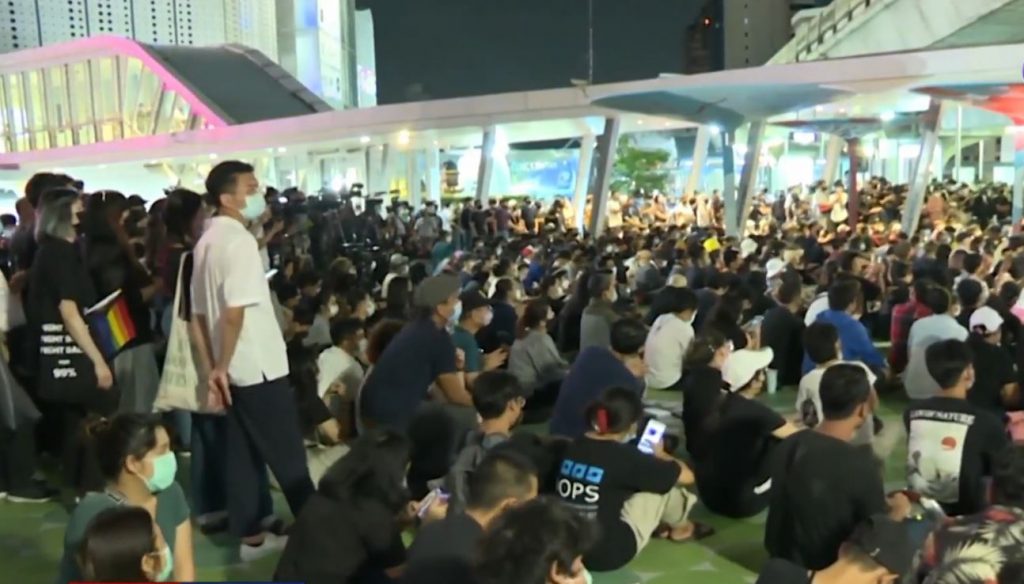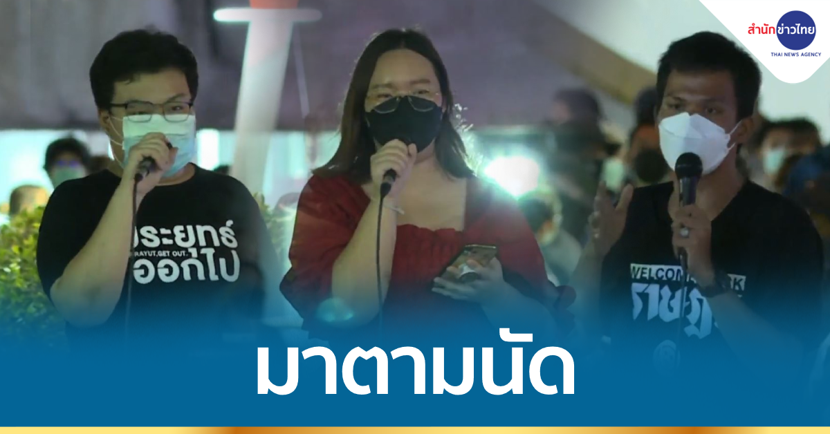 กรุงเทพฯ 24 มิ.ย.-มาตามนัด “เพนกวิน-รุ้ง-ไมค์” ปราศรัยสกายวอล์ก ประกาศดันเพดาน ไล่ พล.อ.ประยุทธ์ ภายใน 3 เดือน ก่อนยุติการชุมนุมเมื่อเวลา 20.30 น.