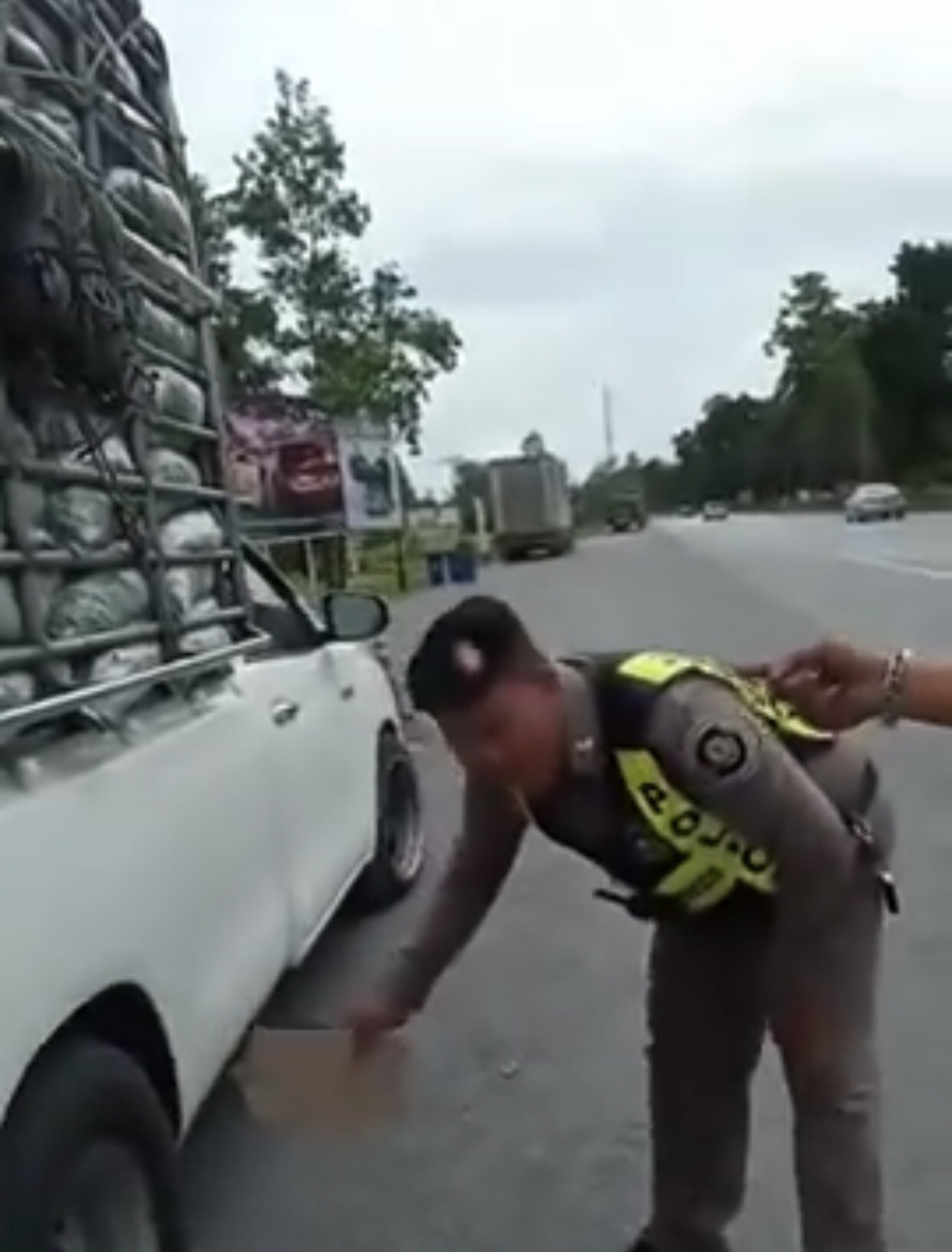 กรณีนี้พนักงานสอบสวนสถานีตำรวจภูธรรัตภูมิ ส่งสำนวนให้พนักงานอัยการฯ พร้อมความเห็นฟ้องดาบตำรวจทางหลวง โดยมีนายพรพจน์ แซ่ล้อ ผู้กล่าวหา จากข่าวคลิปปะทะอารมณ์ของตำรวจทางหลวงรัตภูมิกับ 2 พนักงานขับรถกระบะที่กำลังขนพริกไปส่งที่มาเลเซีย ระหว่างนั้นมีเสียงดังสนั่นจากล้อรถด้านหลัง เมื่อพนักงานขับรถ 2 คนเข้าไปดูถึงกับอึ้ง เพราะยางระเบิดขึ้นแต่ที่น่าตกใจกว่านั้นคือร่องรอยการระเบิดนั้นดูไม่เป็นธรรมชาติ เนื่องจากมีลักษณะคล้ายกับของมีคมกรีดยางรถยนต์เป็นทางยาว จึงแจ้งความดำเนินคดีกับตำรวจทางหลวงคู่กรณี พนักงานสอบสวนได้สอบสวนรวบรวมพยานหลักฐาน สรุปความเห็นฟ้องแล้วส่งสำนวนมาให้พนักงานอัยการ