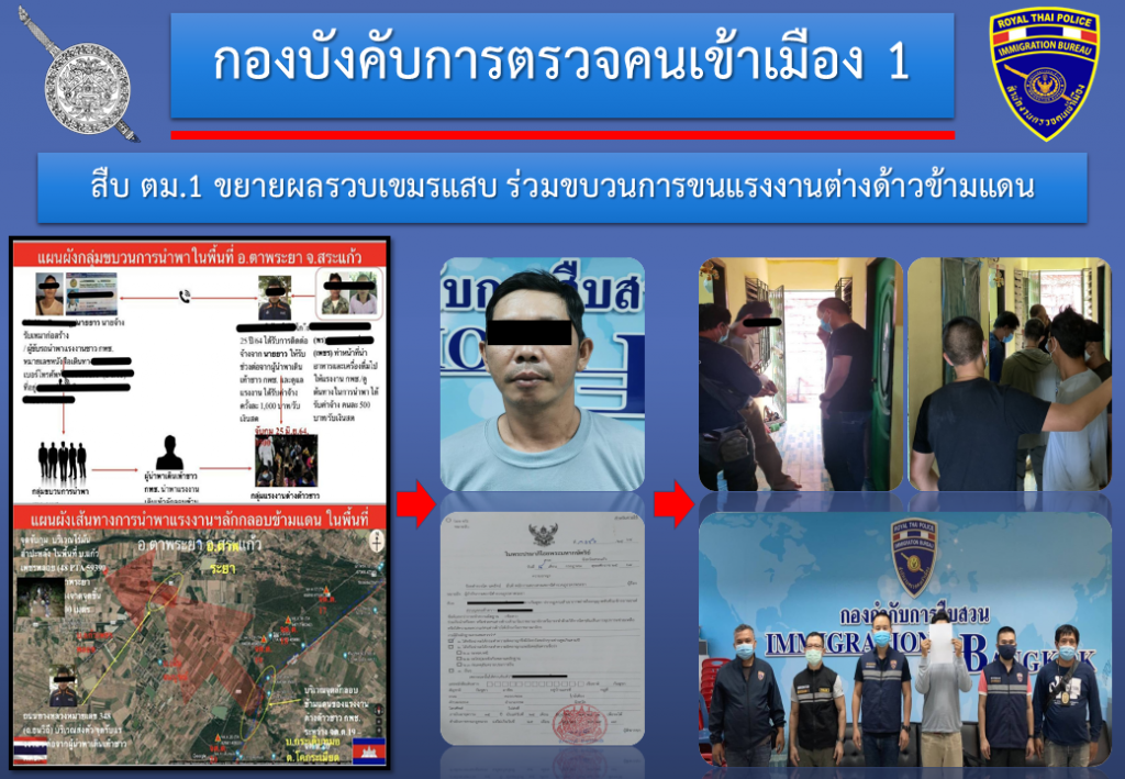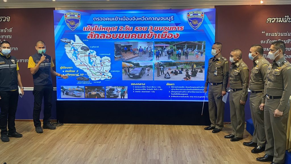 คดีที่ 2 ตำรวจตรวจคนเข้าเมืองจังหวัดกาญจนบุรี จับขบวนการลักลอบขนคนเข้าเมือง 3 ขบวนการ ประกอบด้วย ลักลอบขนแรงงานต่างด้าว ออกจากหมู่บ้านบ่อญี่ปุ่น ประเทศเมียนมา ใกล้ชายแดนไทย อำเภอสังขละบุรี ผ่านช่องทางธรรมชาติ สามารถจับกุม รถยนต์กระบะได้ 2 คัน ในเวลาใกล้เคียงกัน ขณะขนแรงงานจำนวน 29 คน จากการตรวจสอบทั้งหมดไม่มีเอกสารเดินทาง ตำรวจแจ้งข้อกล่าวหา “เป็นบุคคลต่างด้าวหลบหนีเข้ามาและอยู่ในราชอาณาจักรโดยไม่ได้รับอนุญาต” ส่วน 2 ผู้ต้องหาชาวไทย ทำหน้าที่ขับรถ คือนายบุญชู อายุ 30 ปีและนายชนน อายุ20 ปี แจ้งข้อกล่าวหา “ช่วยเหลือ ซ่อนเร้น และช่วยประการใดๆให้บุคคลต่างด้าวหลบหนีเข้าเมืองโดยผิดกฎหมายพ้นจากการจับกุม”จากกการสอบปากคำ จะได้รับค่าจ้าง 10,000 บาทต่อครั้ง ปลายทางอยู่ที่จังหวัดสมุทรสาครและกรุงเทพมหานคร / ส่วนขบวนการที่ 3 จับกุมนาย Thant อายุ 43 ปี สัญชาติเมียนมา เป็นผู้ขับรถเก๋งแบบแวน ภายในบรรทุกแรงงาน 9 คน ไม่มีเอกสารเดินทาง โดนนายแทรน ได้ค่าจ้างหัวละ 1,000 บาท