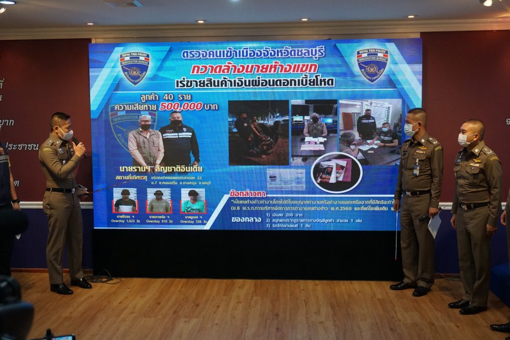 คดีที่ 4 หลังได้รับเรื่องร้องเรียนจากประชาชนในพื้นที่เมืองพัทยา และตำบลหนองปรือ อำเภอบางละมุง ว่ามีขบวนการผ่อนชำระสินค้าในอัตราดอกเบี้ยสูง ตำรวจตม.จังหวัดชลบุรี ลงพื้นที่สืบสวนทราบว่า นายราม สัญชาติอินเดีย รายใหญ่ พร้อมพวกอีก 3 คน โดยมีพฤการณ์ขายสินค้าลักษณะเงินผ่อนรายวัน อาทิ เครื่องซักผ้า ตู้เย็น เป็นต้น ในอัตราดอกเบี้ยร้อยละ 20-30 ต่อเดือน นอกจากนี้พบว่า ผู้ต้องหา 3 คน เป็นบุคคลโอเวอร์สเตย์เป็นระยะเวลานาน (นานสุด 1,023 วัน) โดยมีหลักฐานที่ยืนยันความผิดจำนวนมาก มีผู้เสียหายกว่า 40 คน นอกจากนี้ยังมีหลักฐานเชื่อมโยงถึงขบวนการเงินกู้นอกระบบอื่นๆอีก ซึ่งจะมีการขยายผลต่อไป .-สำนักข่าวไทย