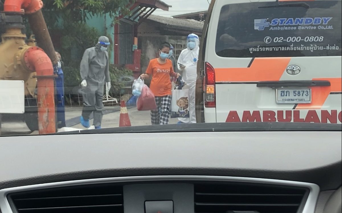 ล่าสุด ช่วงเช้าของวันนี้(13 ก.ค.) เจ้าหน้าที่ศูนย์เอราวัณ กรุงเทพมหานคร ได้จัดรถพยาบาลและทีมแพทย์ พยาบาล เข้าไปรับตัวผู้ติดเชื้อรายนี้ มารับการรักษาที่โรงพยาบาลสนามบุษราคัม เมืองทองธานีแล้ว หลังได้รับการประสานงาน่อส่งตัวจากอาสาสมัครกลุ่มเส้นด้ายที่จัดอาสาสมัครเข้าเวรดูแลผู้ป่วยในพื้นที่มาตั้งแต่เมื่อคืน