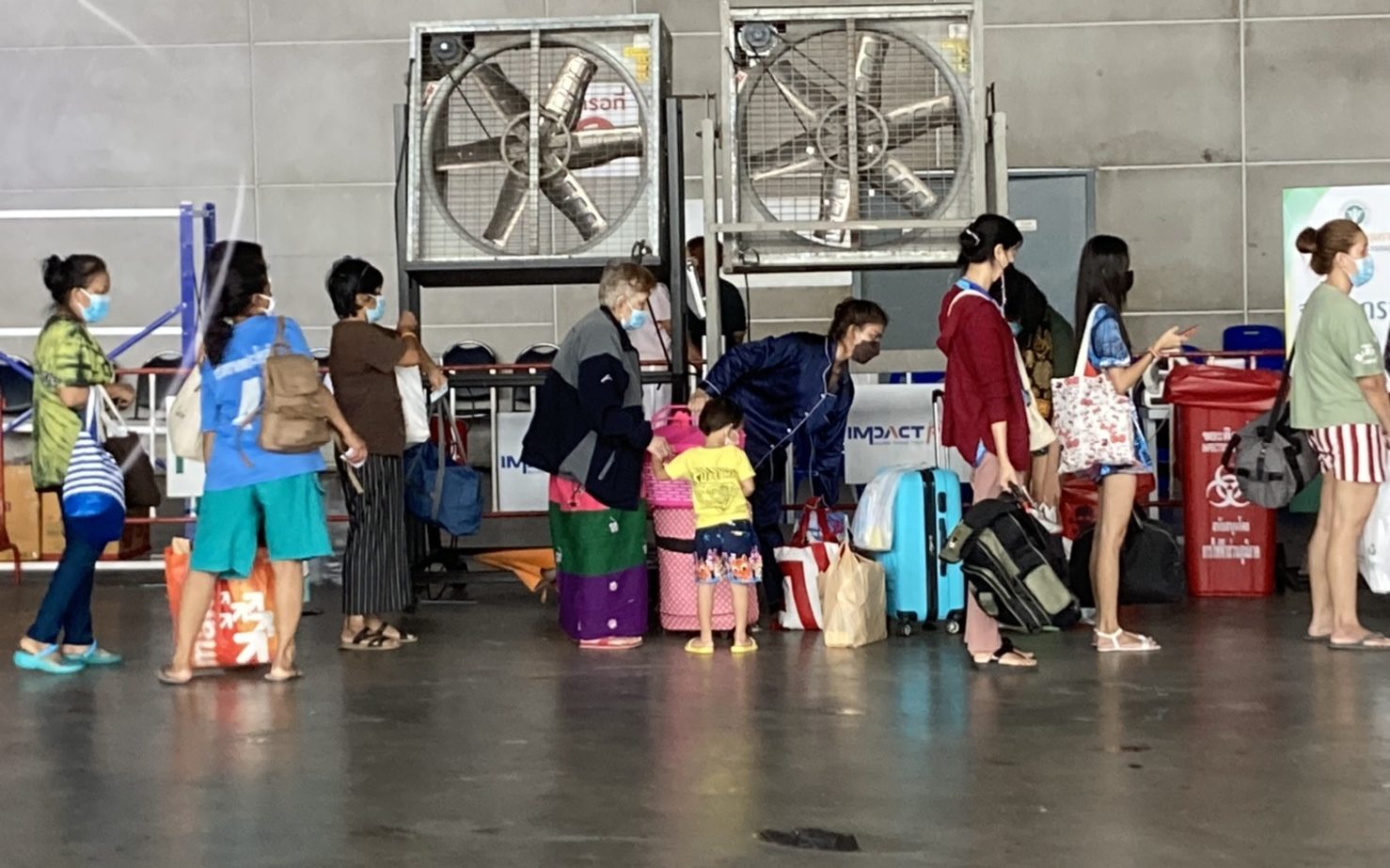 ทีมข่าวสำนักข่าวไทย ติดตามภารกิจของอาสาสมัครรถพยาบาล สังกัดสถาบันการแพทย์ฉุกเฉินแห่งชาติ หรือ สพฉ.นำผู้ติดเชื้อไวรัสโควิด -19 ที่ศูนย์แรกรับและส่งต่อ กระทรวงสาธารณสุข จากอาคารนิมิบุตร สนามกีฬาแห่งชาติศุภชลาศัย ไปส่งยังโรงพยาบาลสนามบุษราคัม เมืองทองธานี