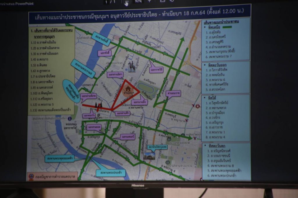 ขณะที่พล.ต.ต.จิรสันต์ ได้ประชาสัมพันธ์ให้ประชาชนหลีกเลี่ยงการใช้เส้นทางถนนราชดำเนินทั้งเส้น, ถนนนครสวรรค์, ถนนพิษณุโลก, ถนนพระราม 5 และสะพานสมเด็จพระปิ่นเกล้า ไปใช้เส้นทางอื่นแทน โดยประชาชนสามารถสอบถามเส้นทางได้ที่ สายด่วน 1197, เว็ปไซต์ trafficpolice และเพจเฟสบุ๊คตำรวจจราจร