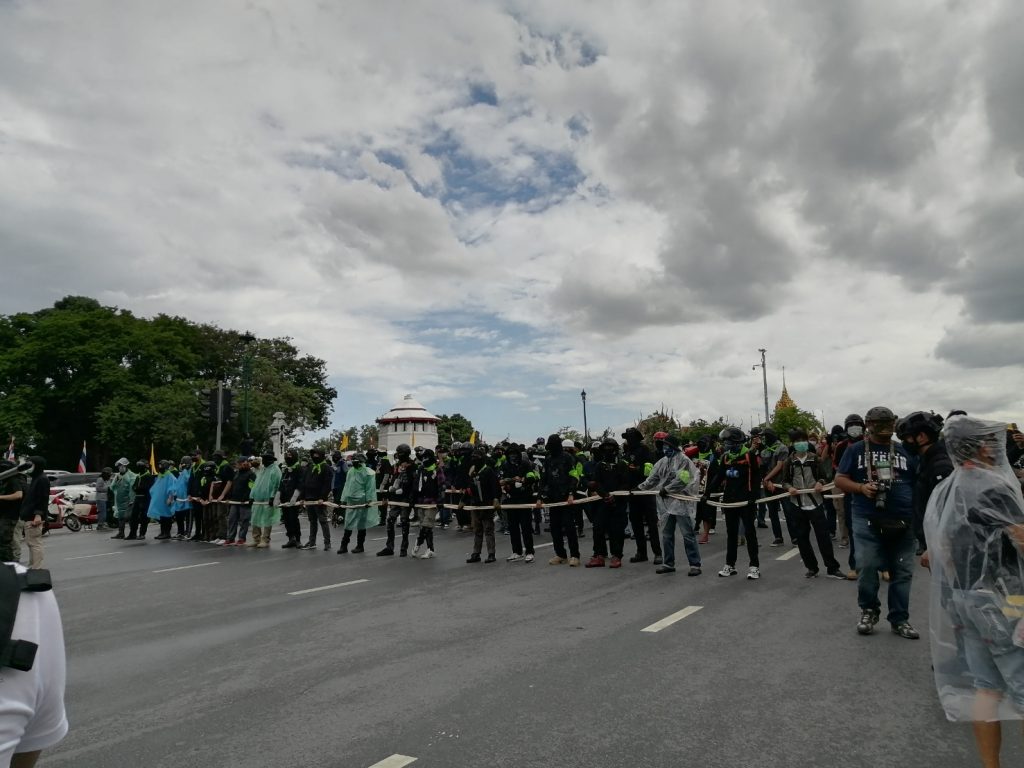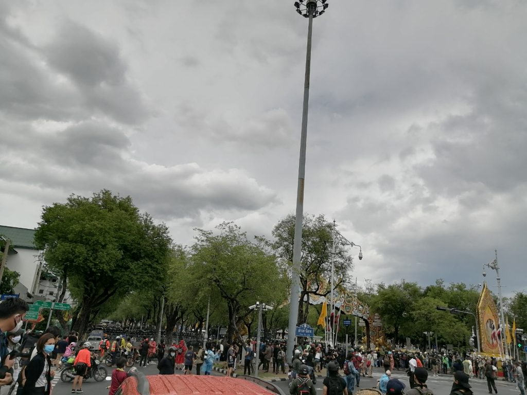 เวลา 15.00 น.บรรยากาศการชุมต่อต้านรัฐบาล ของกลุ่มราษฎรแล้วเครือข่าย บริเวณอนุสาวรีย์ประชาธิปไตย เริ่มขึ้นตั้งแต่เวลา 14.00 น. ที่ผ่านมา ก่อนเคลื่อนขบวนไปตามถนนราชดำเนิน มุ่งหน้าทำเนียบรัฐบาล ก่อนหยุดทำกิจกรรมแยกผ่านฟ้า เรียกร้องให้ตำรวจควบคุมฝูงชน ซึ่งประจำการบนถนนราชดำเนินนอก เปิดทางให้ผู้ชุมนุมผ่านเข้าไปยังถนนราชดำเนินนอก มุ่งหน้าทำเนียบรัฐบาล
