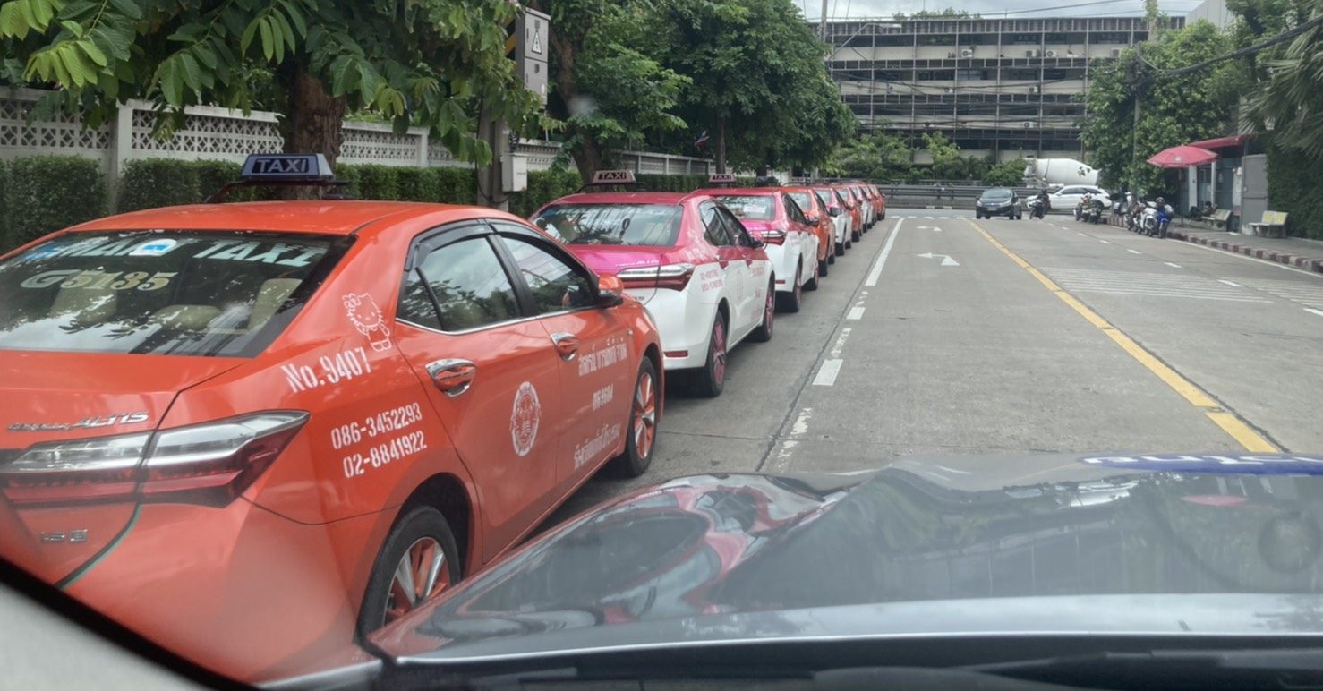 ผู้สื่อข่าวสำนักข่าวไทย ลงพื้นที่ริมถนนมิตรไมตรี ด้านหน้ากระทรวงแรงงาน เขตดินแดง พบว่ามีรถแท็กซี่จอดเรียงรายตลอดแนวล้นออกไปจนถึงช่องทางซ้ายสุดถนนดินแดง รวมกว่า 30 คัน หลายคันติดแผ่นป้ายข้อความเรียกร้องให้รัฐบาลแก้ไขปัญหาปากท้องของคนขับรถแท็กซี่ ที่ได้ผลกระทบจากการบังคับใช้มาตราการควบคุมการแพร่ระบาดของเชื้อไวรัสโควิด -19 ในพื้นที่กรุงเทพฯและปริมณฑล ขณะที่บางคันแปะป้ายเสนอขายรถยนต์พร้อมประวัติการซ่อมแซม แต่ไม่พบตัวผู้แสดงตัวเป็นคนขับ