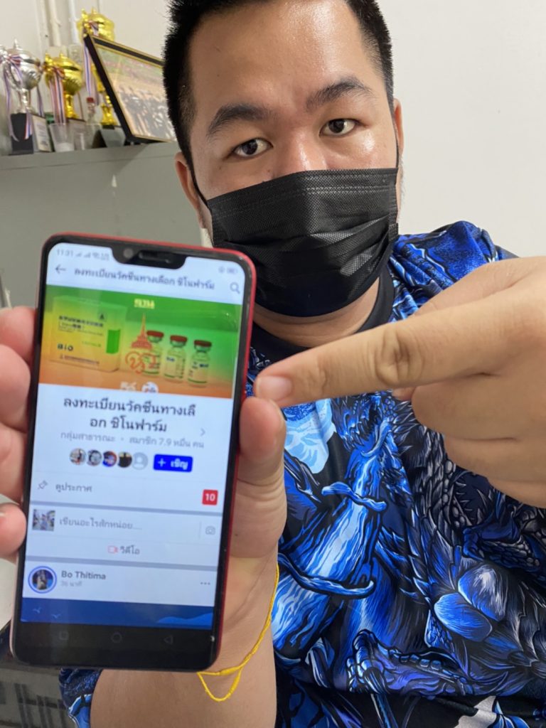 ชุดสืบสวนได้ทำการสืบสวนจนทราบว่า นายฐาปกรณ์ แก้วศรี อายุ 20 ปี เป็นคนร้ายในคดีดังกล่าว และได้มาพักอยู่ที่โรงแรม “หอพักสบาย” เลขที่ 25/1 หมู่ 4 ต.เกาะสมบูรณ์ อ.ศรีมหาโพธิ จว.ปราจีนบุรี จึงได้เดินทางไปตรวจสอบ พบ นายฐาปกรณ์ฯ อยู่หน้าห้องพักเลขที่ 5 จึงได้แสดงตัวขอทำการตรวจค้น โดยแสดงความบริสุทธิ์ใจก่อนทำการตรวจค้น นายฐาปกรณ์ฯ ให้การยอมรับสารภาพว่า ตนเป็นผู้ใช้บัญชี facebook จำนวน 7 บัญชี ชื่อ “สิทธิพงษ์ ทองฮุย” , “กิตติพงษ์ บางประอินทร์”, “Thapakorn kaewsri”, “อัพ มาแพนดี้”, “ฐาปกรณ์ แก้วศรี”, “Yutthana Kawirai” เและ “แจ็ค กี้” ทำการโพสต์ข้อความหลวกลวงขายวัคซีนป้องกันโควิท 19 ตามกลุ่ม facebook สาธารณะต่างๆ จนวน 4 กลุ่ม เช่น “ลงทะเบียนวัคซีนทางเลือก ชิโนฟาร์ม” “มาฉีดวัคซีนกันเถอะ” “จองฉีดวัคซีนที่ไหนได้บ้าง? วัคซีนทางเลือกจองได้ที่ไหน?” “วัคซีทางเลือกชิโนฟาร์ม ราชวิทยาลัยจุฬาภรณ์” ซึ่งตนเองไม่ได้มีวัคซีนดังกล่าวแต่อย่างใด โดยเงินที่ได้จากการหลอกลวง ตนเองนำไปใช้เล่นเกมส์ออนไลน์ และใช้จ่ายส่วนตัว ซึ่งการกระทำดังกล่าว ได้เริ่มกระทำผิดในครั้งนี้มาเป็นระยะเวลาประมาณ 3 เดือน พร้อม สามารถตรวจยึดของกลาง โทรศัพท์ มือถือ 1 เครื่อง (2 ซิม) และ เงินสด จำนวน 8,000 บาท
