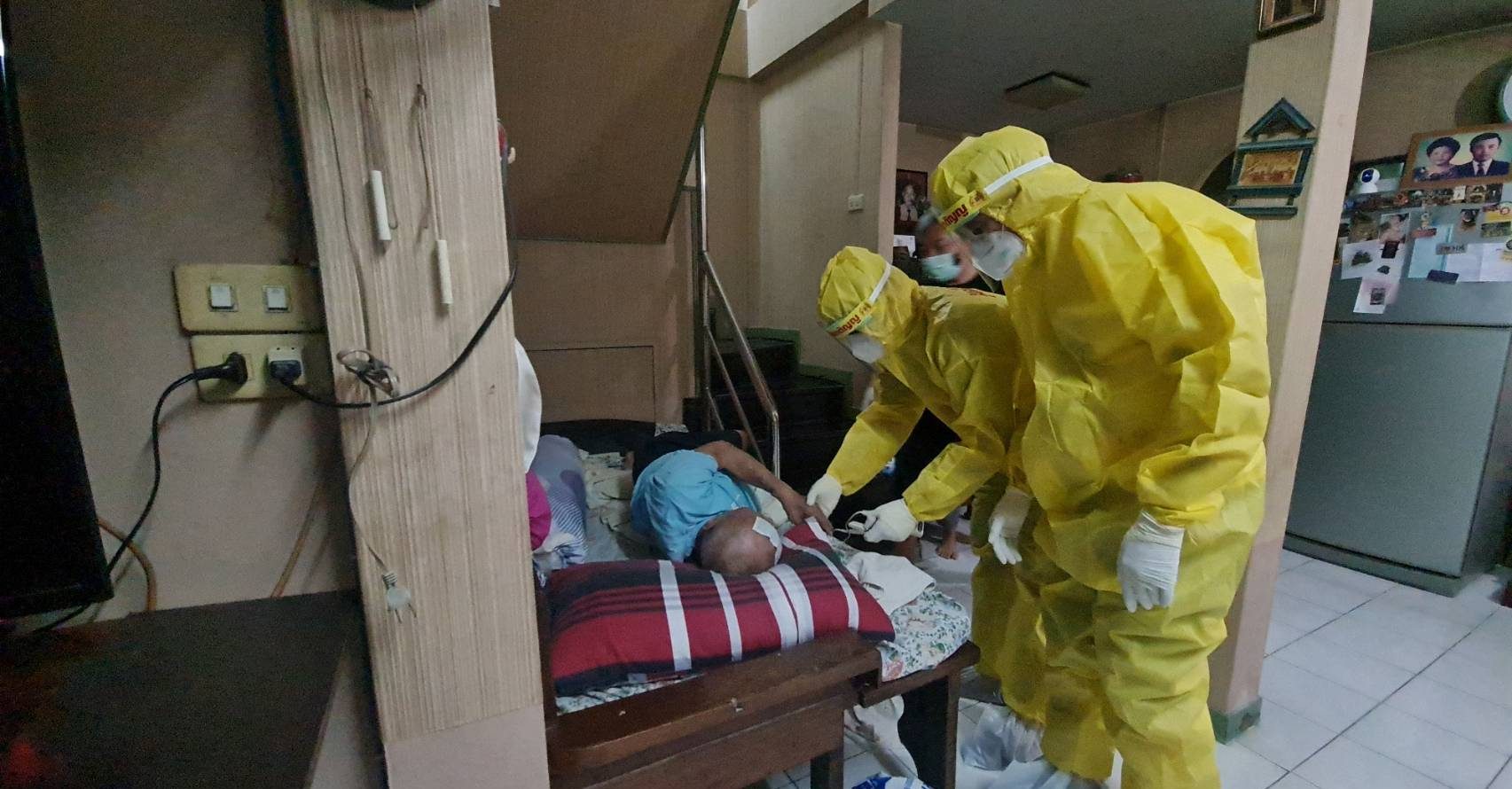 เช้ามืดวันนี้ เจ้าหน้าที่ทีมส่งต่อลมหายใจ มูลนิธิร่วมกตัญญู เข้าช่วยเหลือผู้ป่วยติดเชื้อไวรัสโควิด- 19 จำนวน 2 คน เป็นชายหญิง อายุกว่า 70 ปี ในบ้านเดี่ยวซอยเพชรเกษม 112 เขตหนองแขม หลังขอความช่วยเหลือจากญาติที่อยู่ร่วมบ้านว่าผู้ป่วยมีอาการหายใจ หอบเหนื่อย วัดค่าความเข้มข้นออกซิเจนในเลือดจากเครื่องวัดปลายนิ้วได้แค่ร้อยละ 81